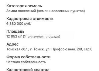 Продается земельный участок по адресу: Томская область, г. Томск, пер. Тихий, 12. Площадь уточненная: 1 276 кв. м. Категория земель: Земли населённых пунктов. Разрешенное использование: Для эксплуатации индивидуального жилого дома. Участок правильной геометрической формы, удачное расположение в черте города, в развитом районе с удобной транспортно... |