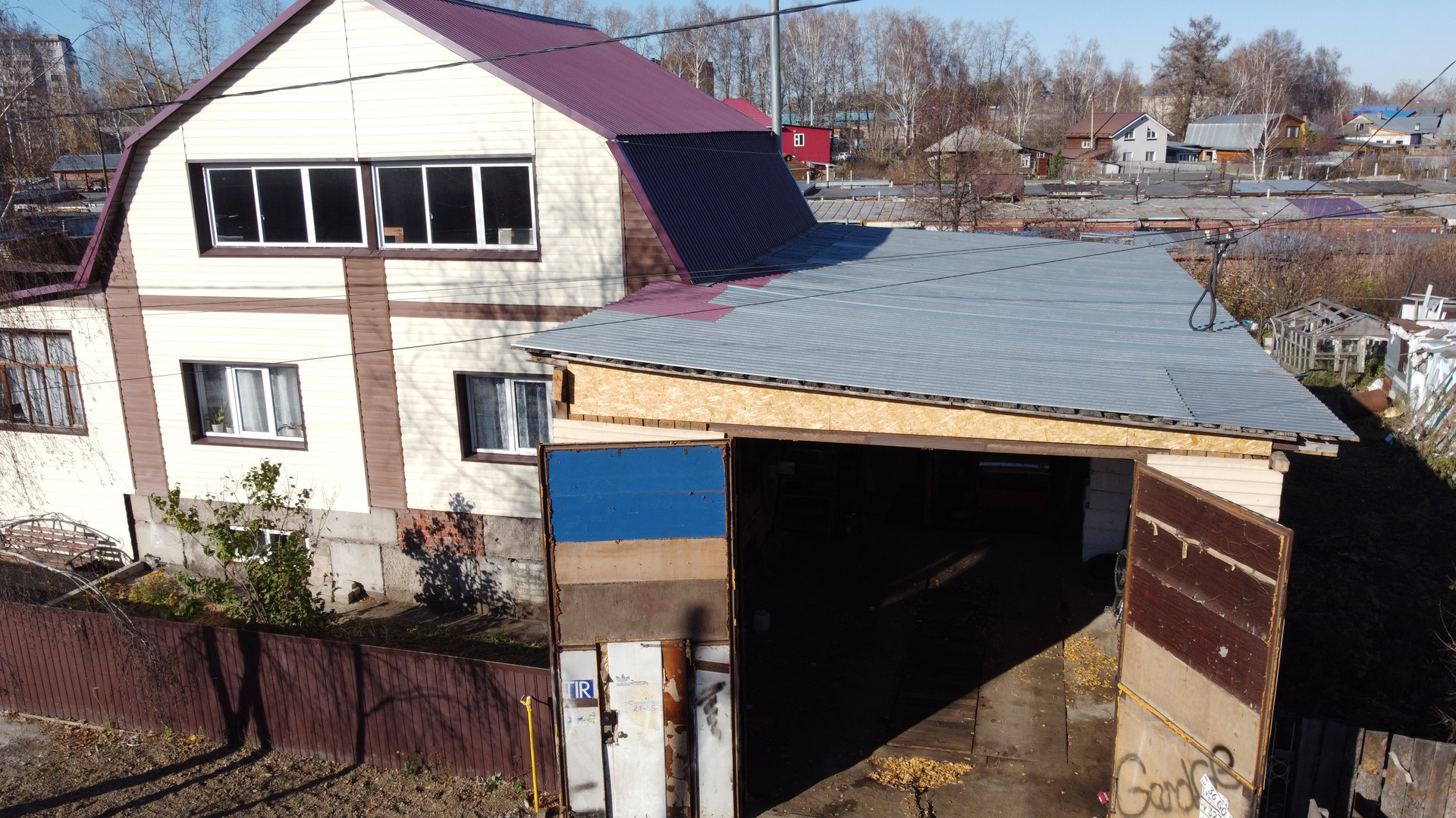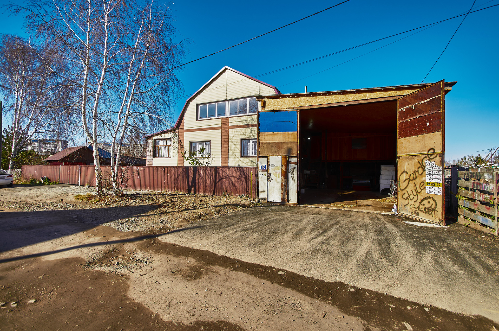 К дому пристроена большая веранда и огромный гараж высота потолков 6метров под спецтехнику с ямой и полуторным этажом.