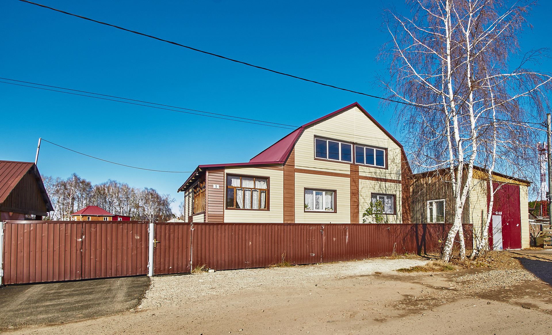 К дому пристроена большая веранда и огромный гараж высота потолков 6метров под спецтехнику с ямой и полуторным этажом.