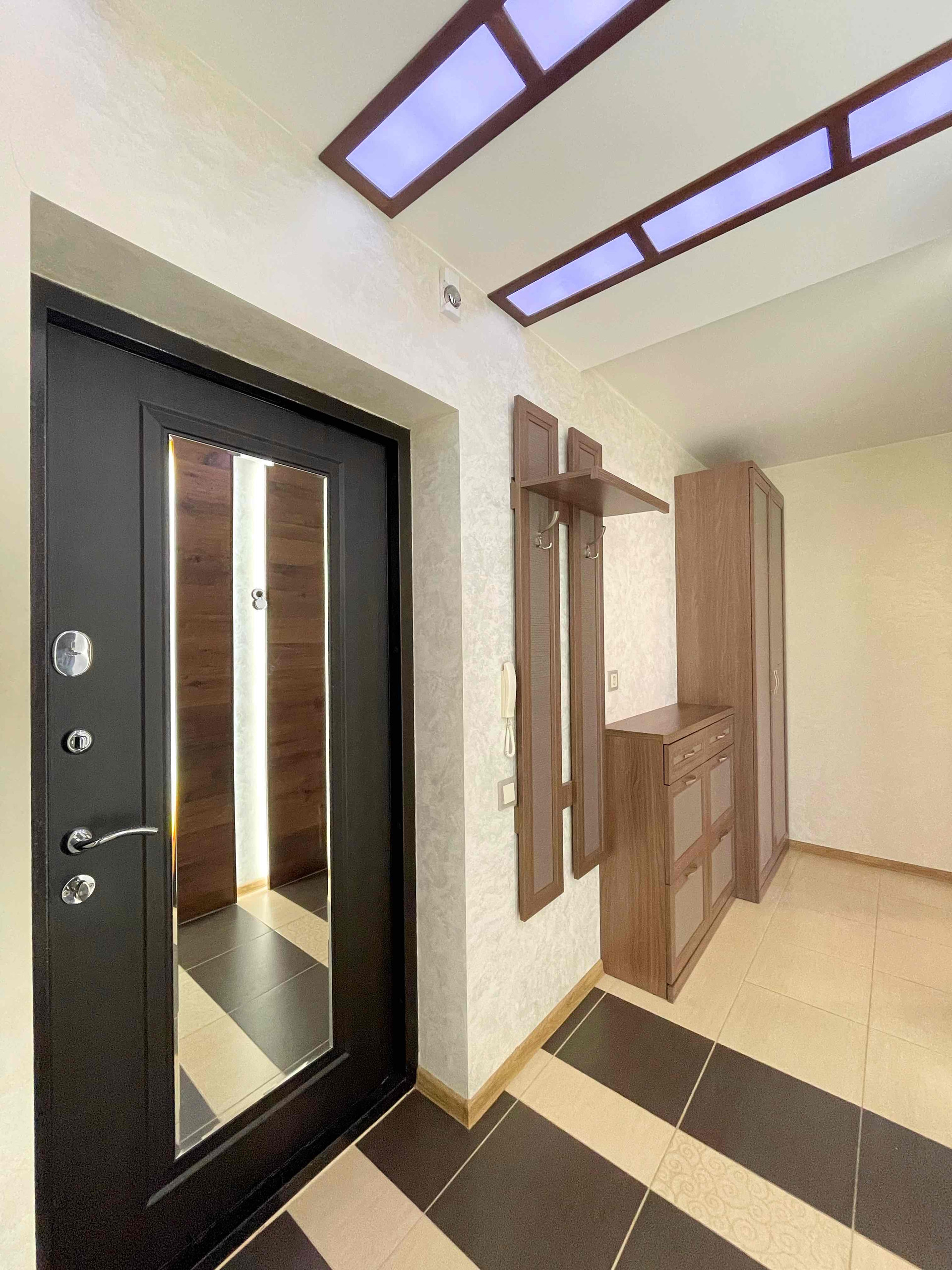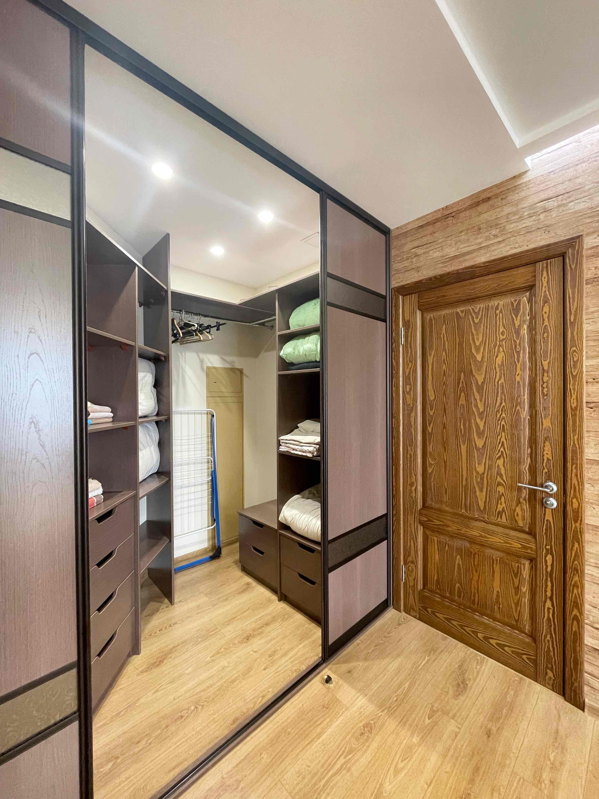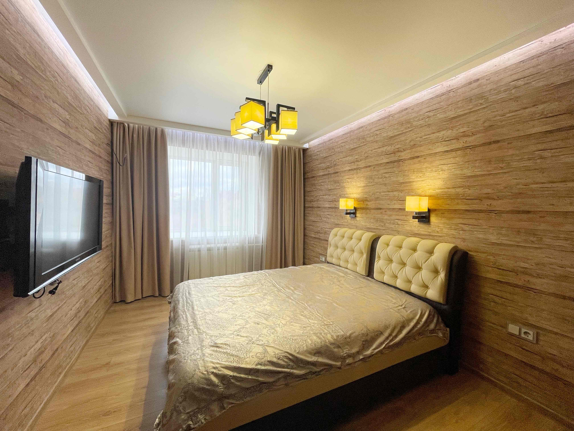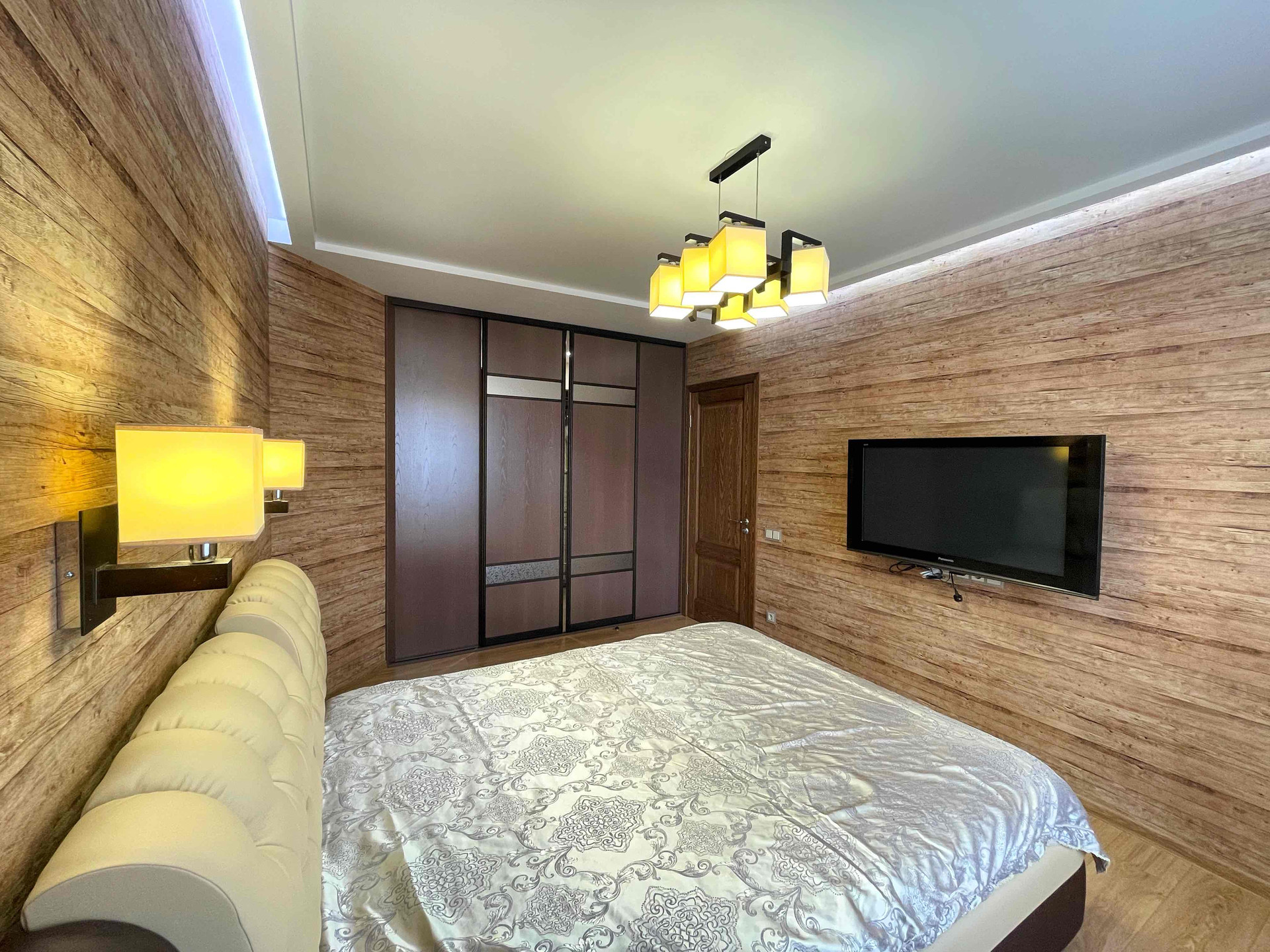 ✅ В квартире выполнен качественный ремонт дорогими современными материалами. Во всей квартире двери из натурального дерева, различные световые группы, дорогая качественная мебель. В спальне комфортная двуспальная кровать с ортопедическим матрасом, вместительная гардеробная, телевизор.