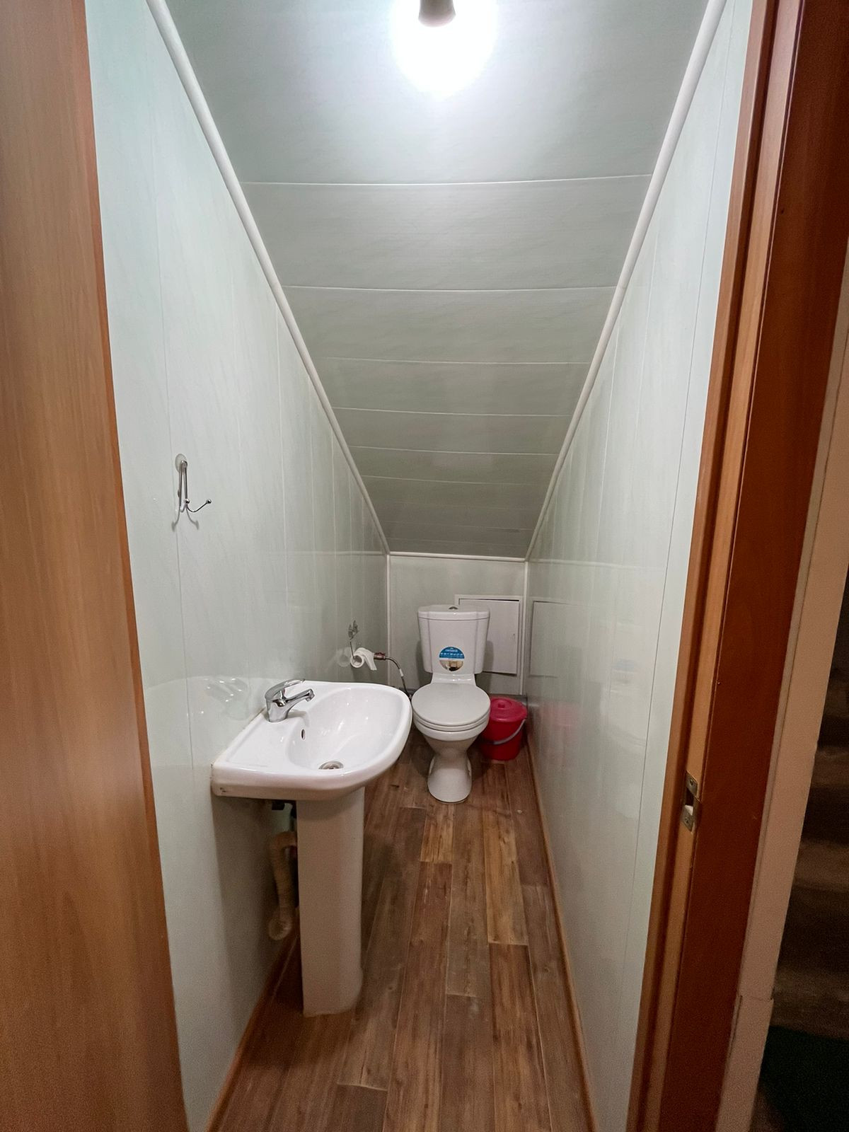 1 комната на первом этаже, 3 комнаты на втором.