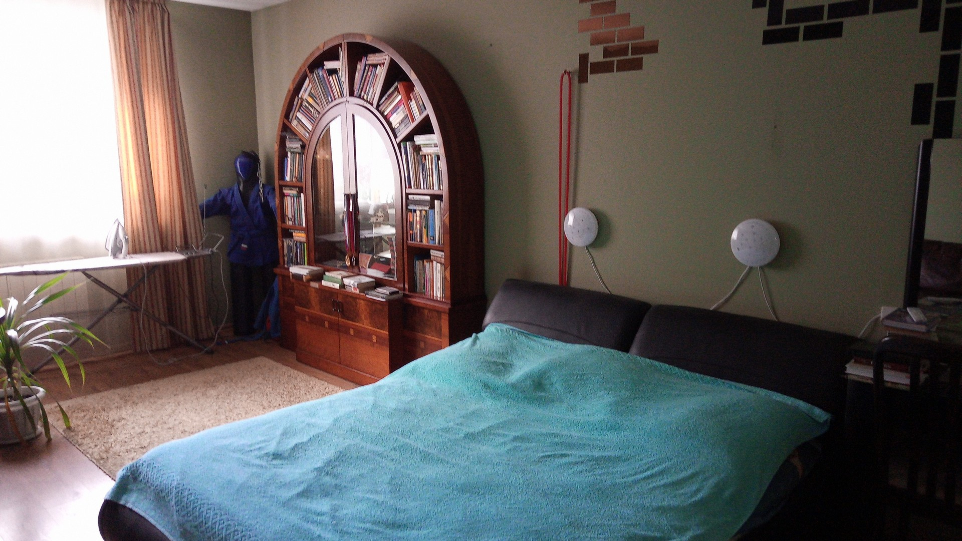 Кухня -студия совмещена с гостиной , кабинет и отдельная спальная комната с оборудованной гардеробной комнатой.