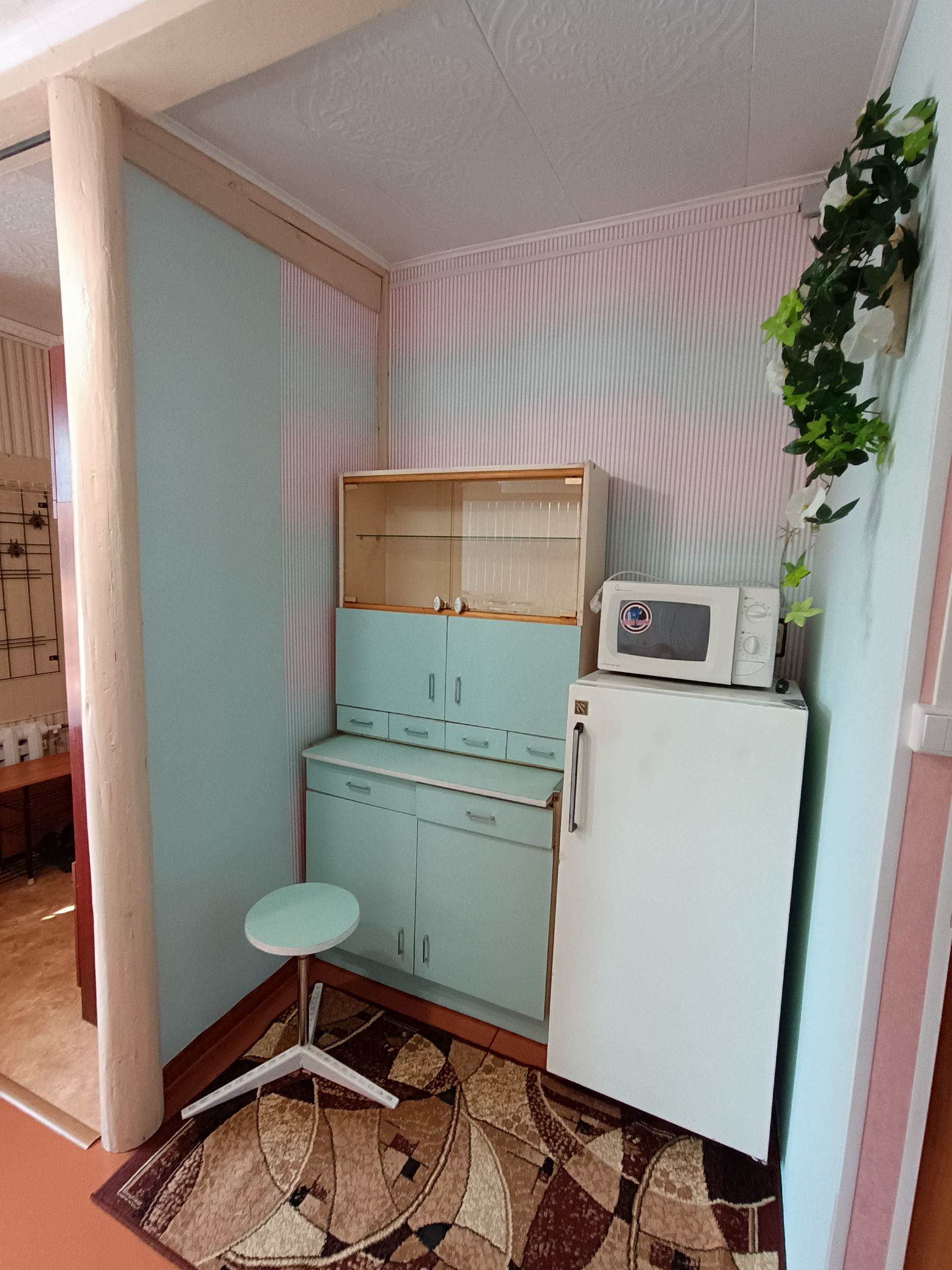 Полностью готова к проживанию, есть вся необходимая мебель и техника (холодильник, микроволновка, плита с духовкой, чайник, стиральная машина, душевая кабина, бойлер, телевизор, гладильная доска, сушилка для белья). Рядом с домом - небольшой продуктовый магазин, в 7 минутах Мария-Ра (ост. Дом радио), в 8 минутах Ярче и Абрикос (Б. Подгорная), в 10 минутах Ярче (ост. Телецентр). По соседству есть школа. Рядом приличные дружелюбные соседи.