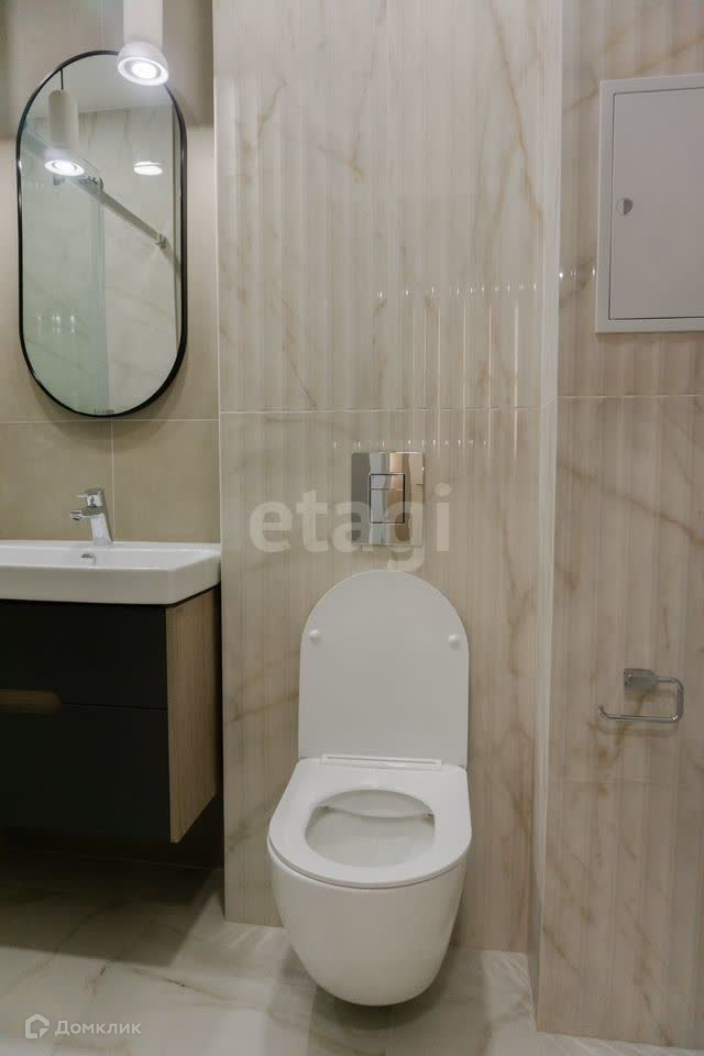 В сан-узле полы с подогревом и премиальная немецкая сантехника.