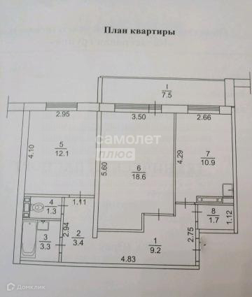 Общая площадь 60.7 м2