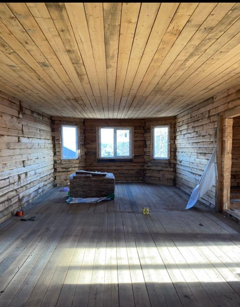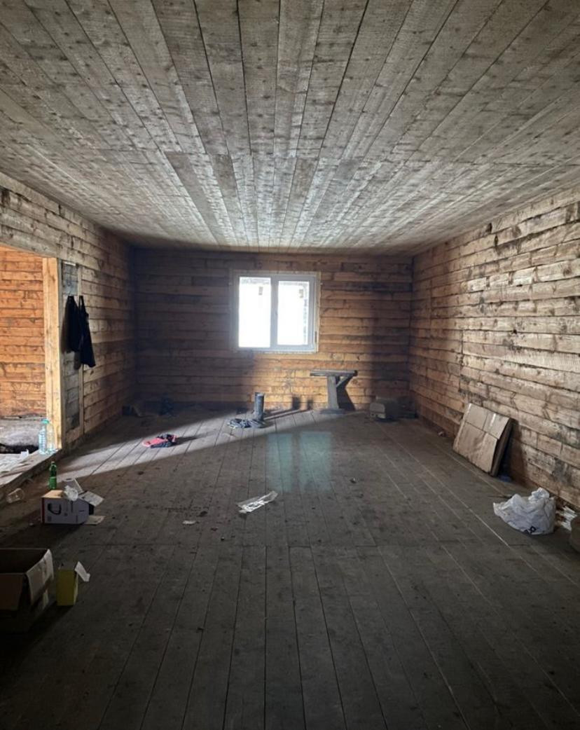 Недостроенный двухэтажный дом, встроенный гараж со смотровой ямой, крыша перекрыта черепицей, централизованное холодное водоснабжение, слив, подведен свет, установлены стеклопакеты, баня, земля в собственности. Недалеко от 1 школы.