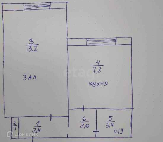 Общая площадь 30.2 м2