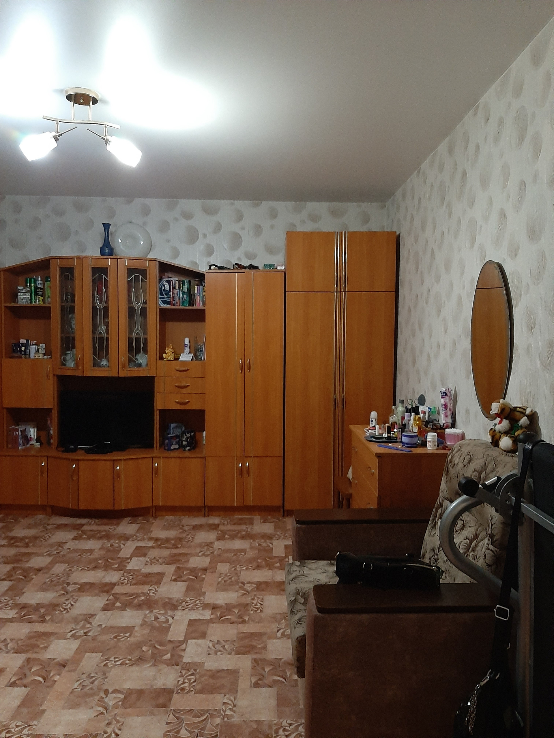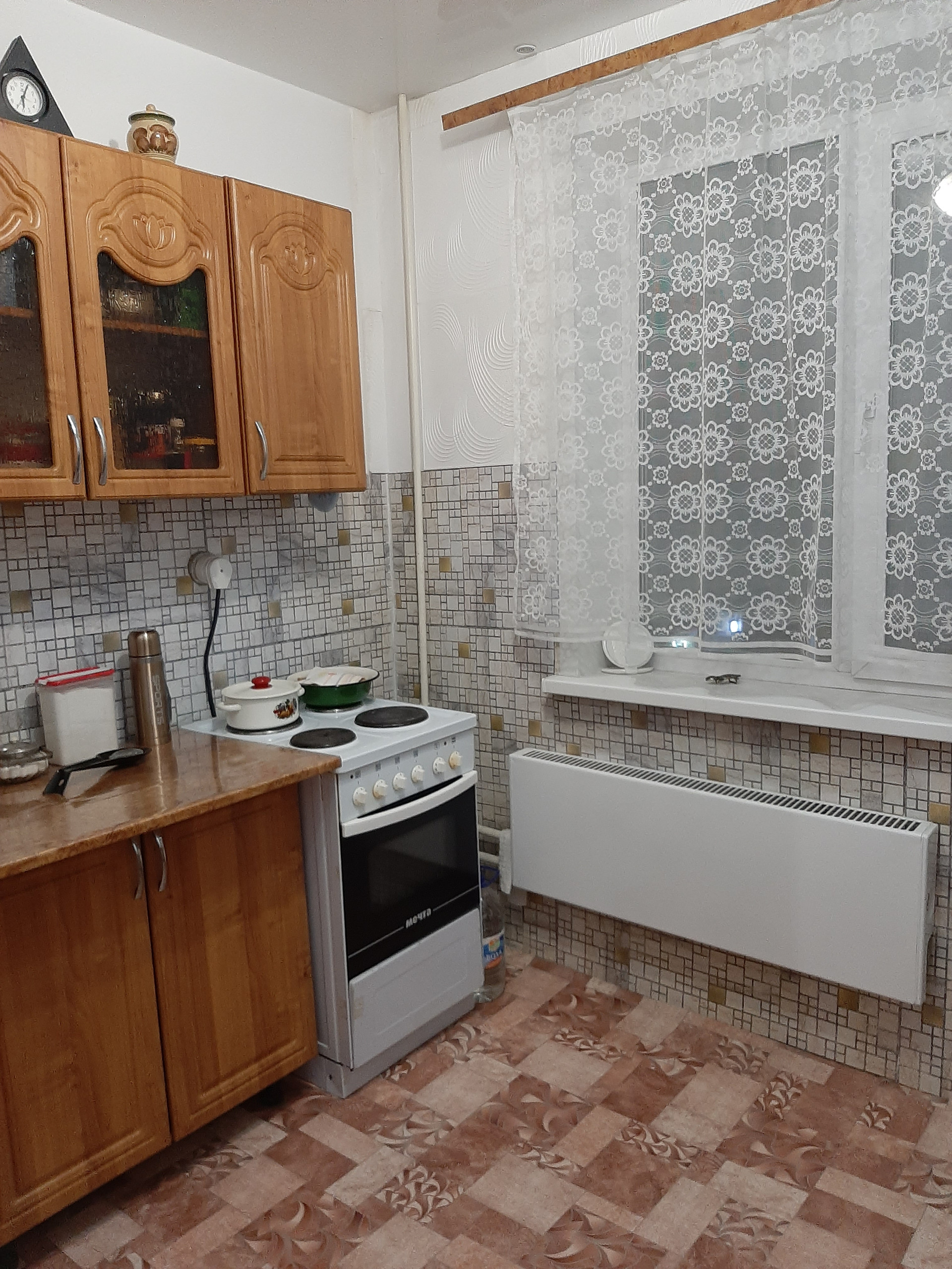 В квартире установлены стеклопакеты, водосчетчики, застекленная лоджия.  Санузел раздельный, имеется кладовка. Квартира светлая, теплая, окна выходят на супермаркет "Пятерочка". В шаговой доступности детские сады, школа, супермаркеты, остановка общественного транспорта. Двор заасфальтированный, во дворе детская площадка, автостоянка. В подъезде сделан ремонт. Рассмотрим обмен на 1-но комнатную квартиру на 1, 2 этаже.