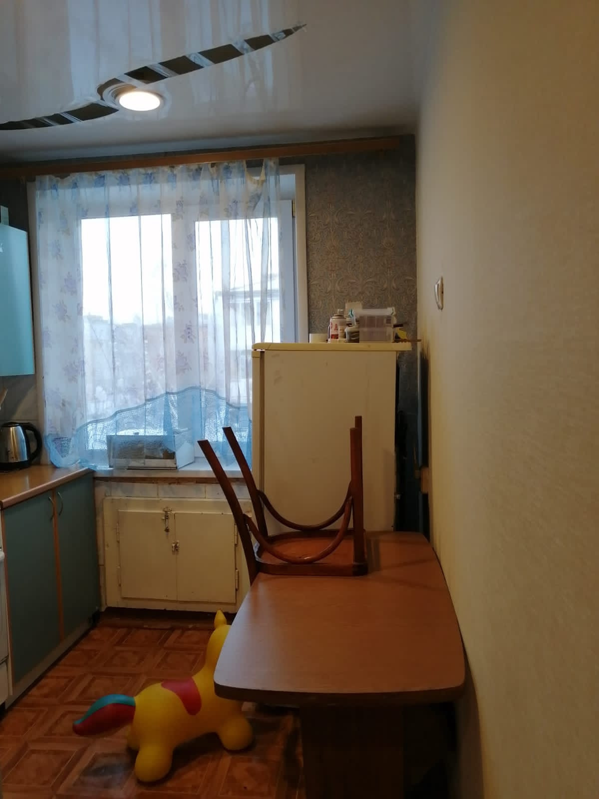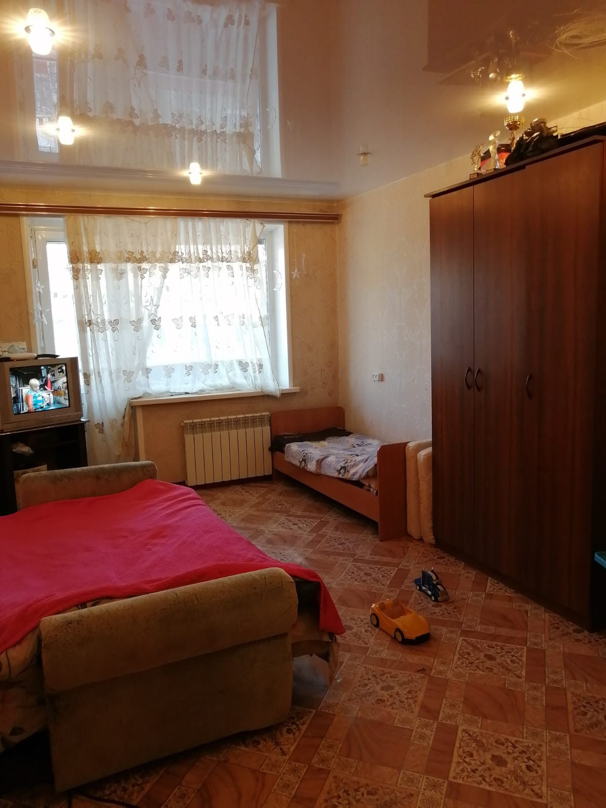 Однокомнатная квартира, нормальном жилом состоянии. Установлены стеклопакеты, натяжной потолок. В гостиной современный радиатор.