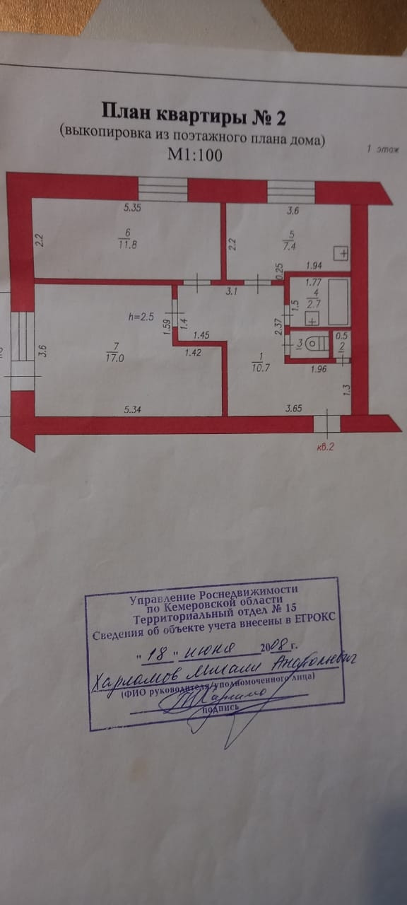 2-комнатная квартира, 50.9 м2, этаж 1 / 3, на продажу в Топках, улица Ленина, 157