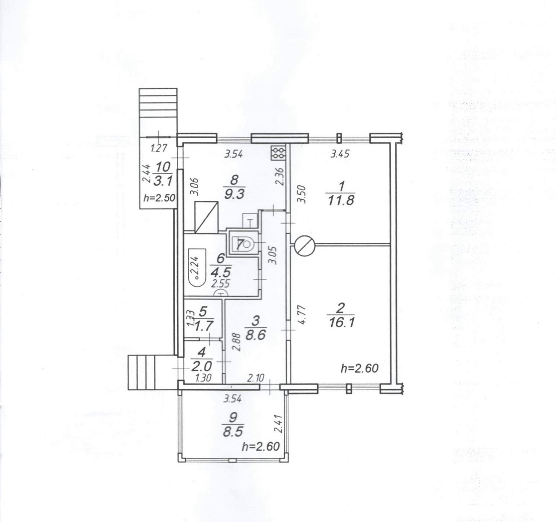 Высота потолков 2.6 м