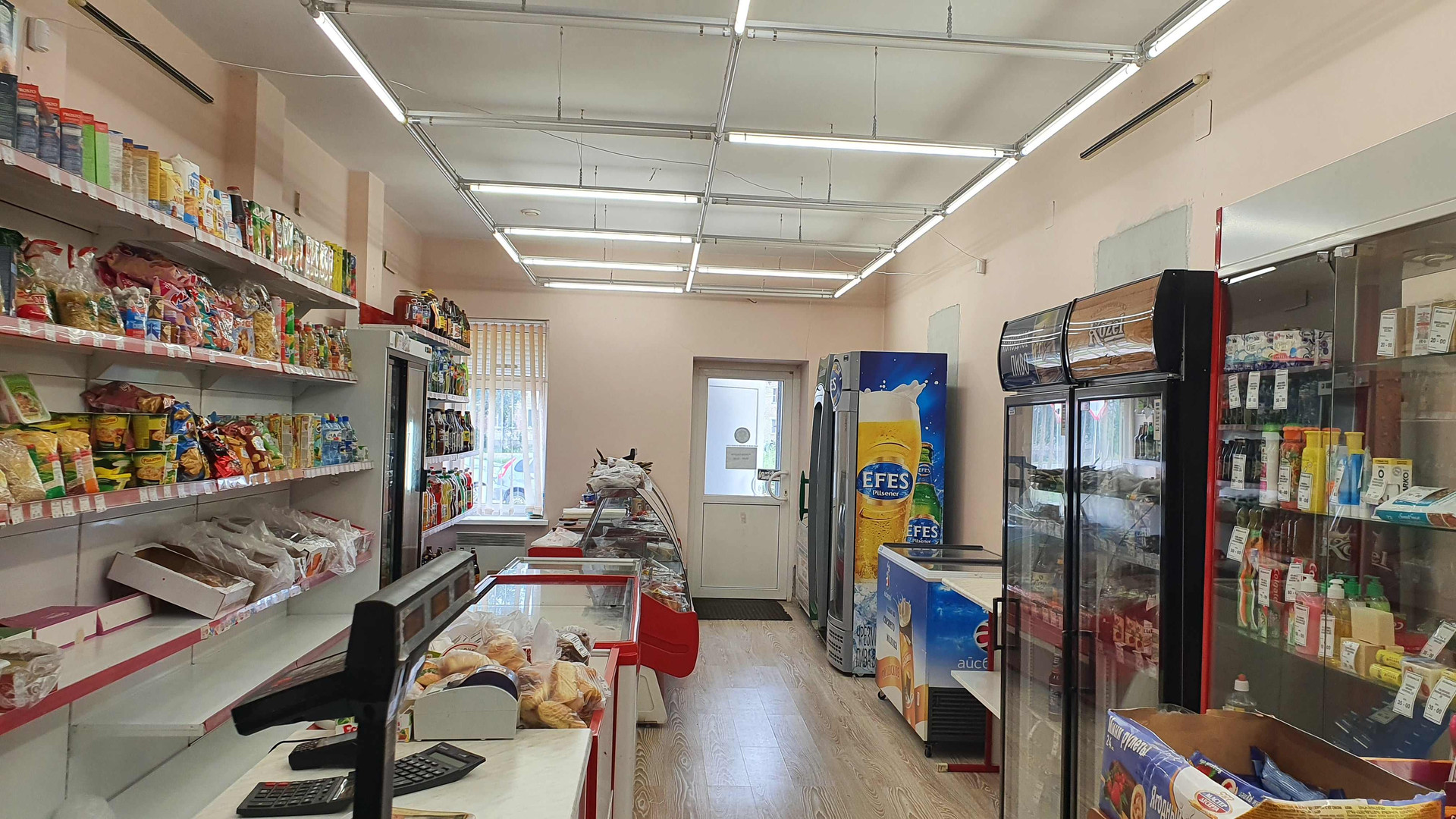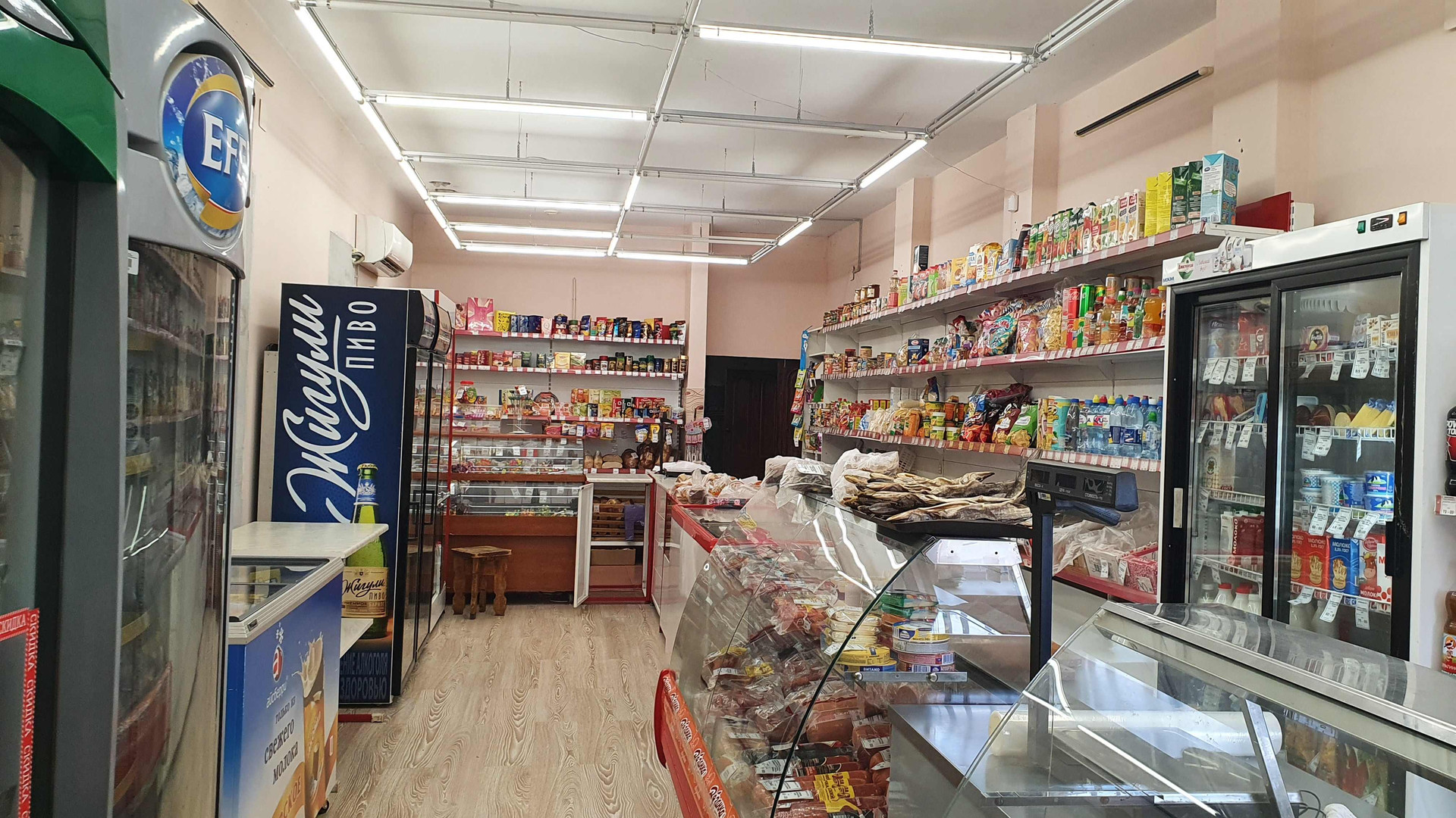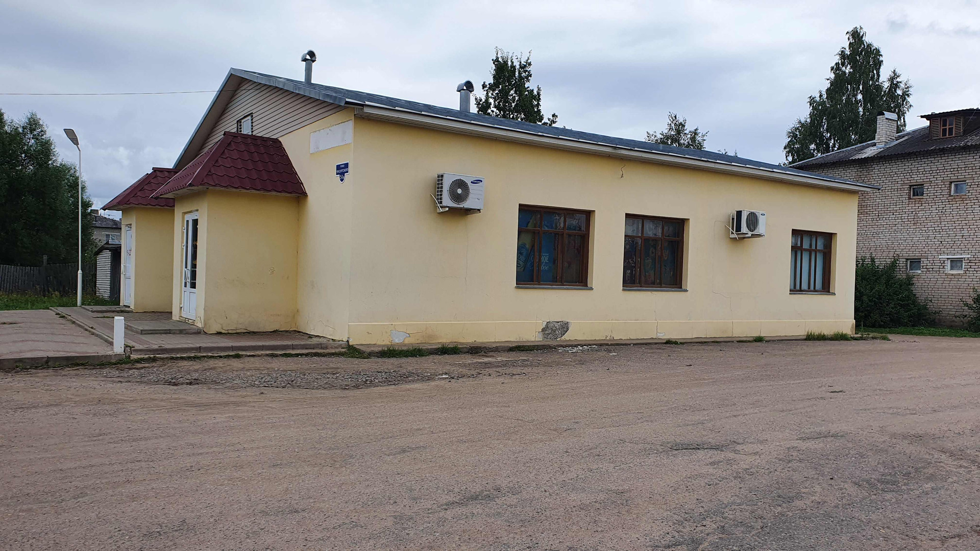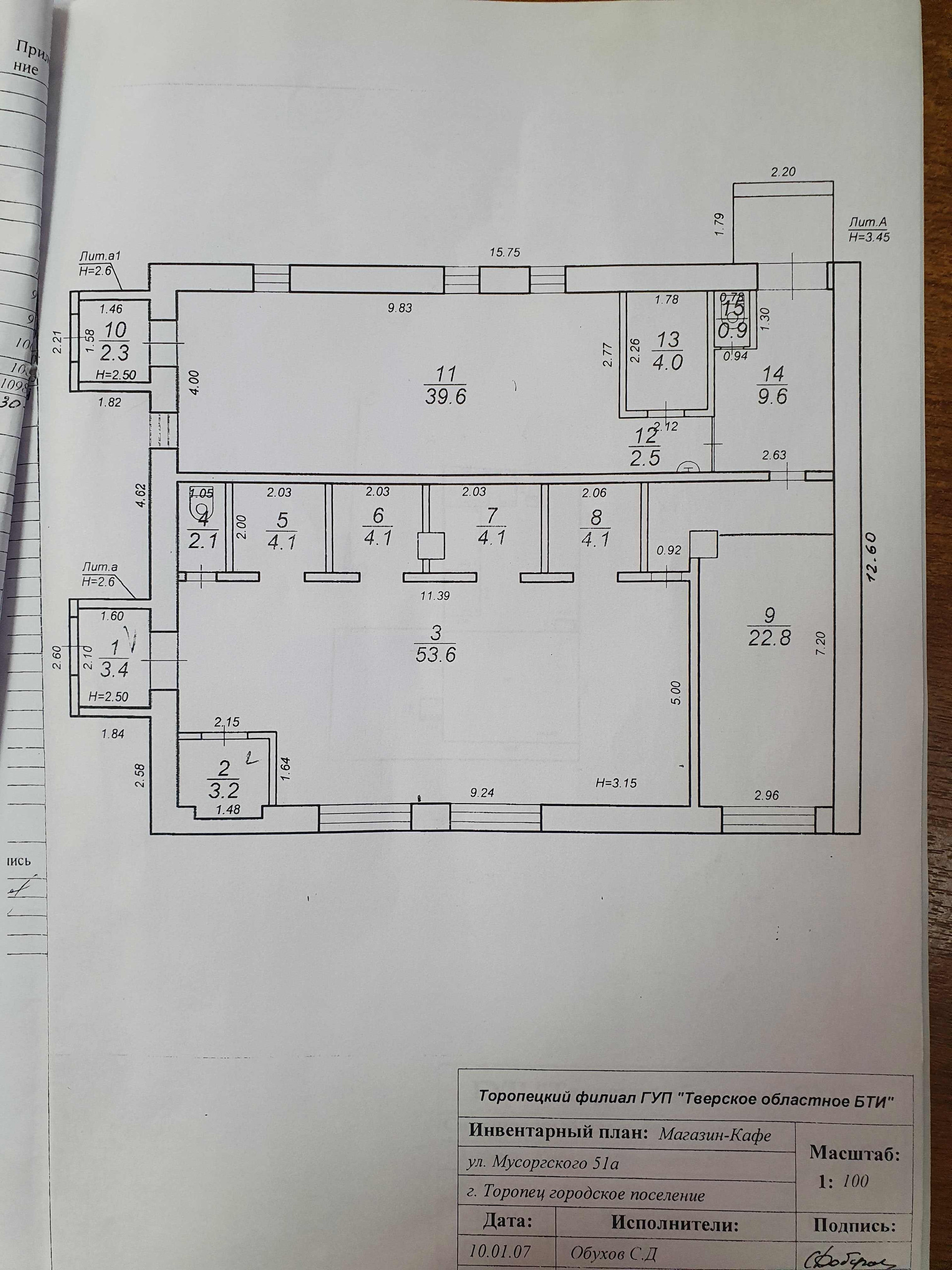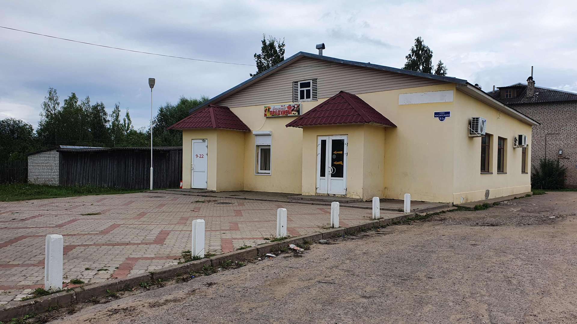 (Лот №76) Продаётся действующий магазин в г. Торопец, ул. Мусоргского д.51-а, общей площадью 160,4 кв.м. Здание 1983 года постройки, кирпичное с ж\б перекрытиями, оштукатурено, кровля жестяная, стены отшпаклеваны и окрашены, пол – плитка, высота потолков 3.15 м. Здание магазина расположено на земельный участке площадью 7 соток. Участок в собственности.  Коммуникации: Электроэнергия 29 кВт, водопровод центральный, канализация местная, интернет, своя большая мощёная парковка. В здании 2 торговых зала, 2 подсобных помещения, 2 главных входа и один технический во двор. Стены между торговыми залами и подсобными помещениями не капитальные и возможно увеличить торговый зал до 115 кв.м. или 140 кв.м. В здании находится действующий продовольственный магазин, а во второй части располагалось кафе. Возможно использовать под магазин, кафе, офис или аптеку. Документы готовы к продаже .