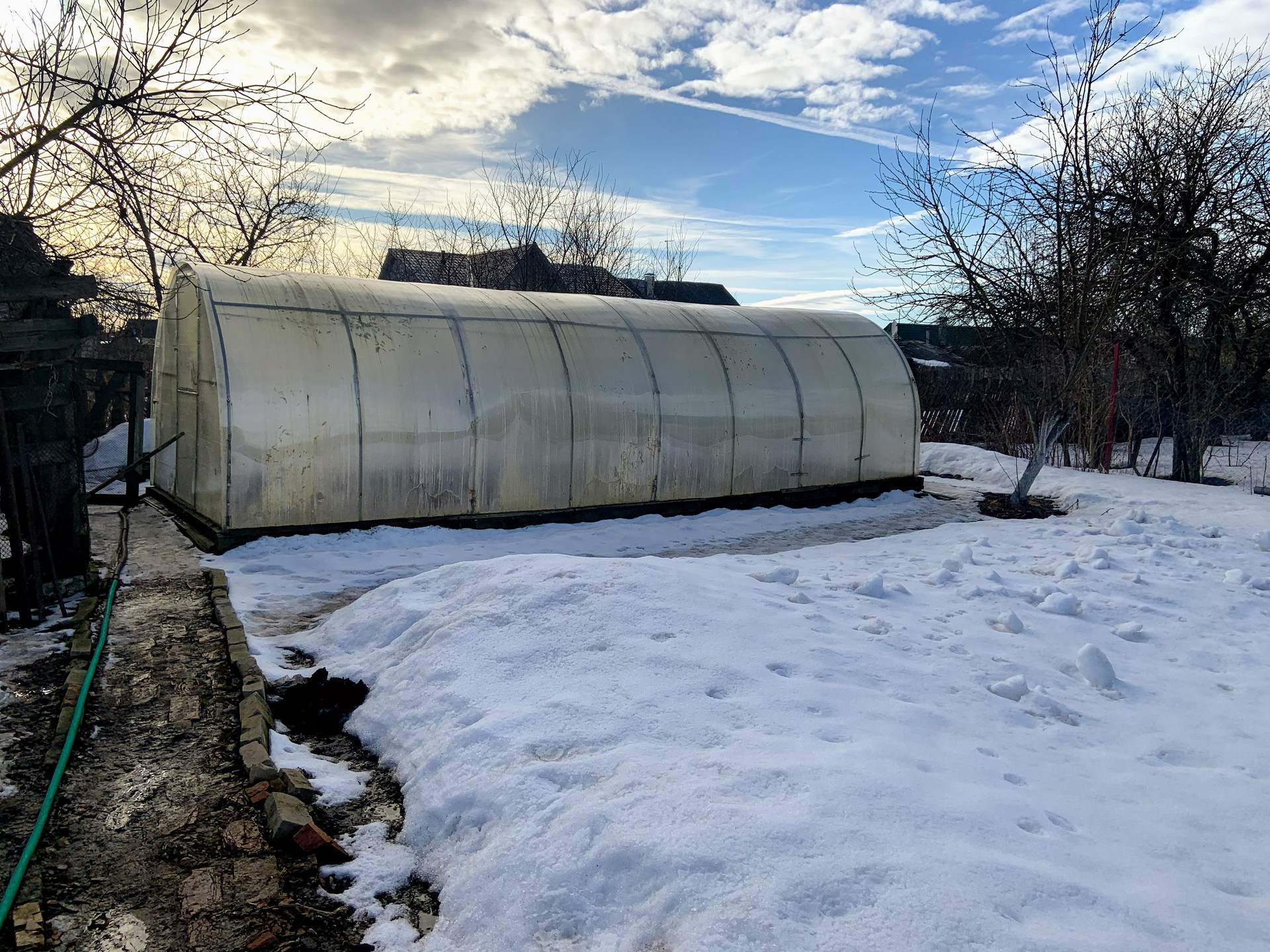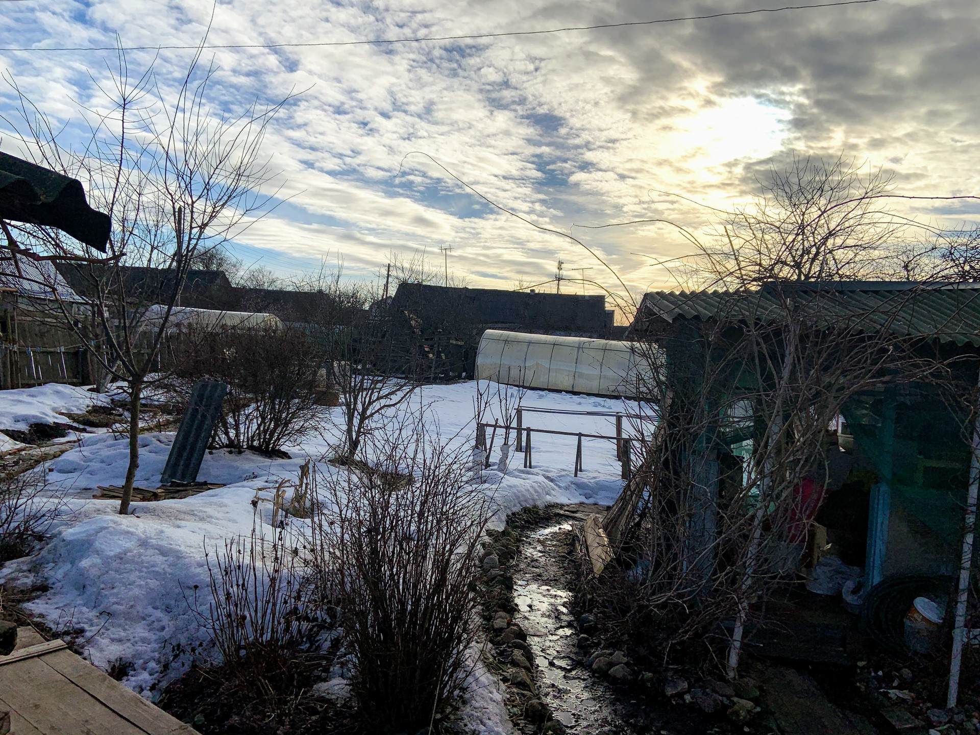 - теплица, курятник, сарай и огород