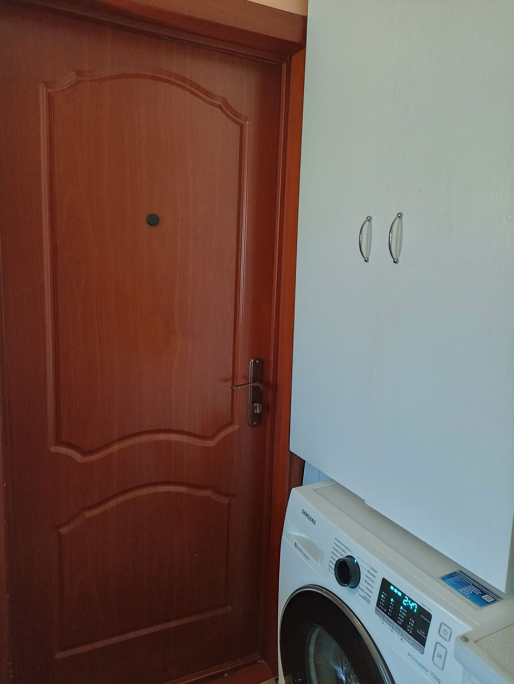 Комната в бывшем общежитии завода Марс, санузел общий на четыре комнаты. Остаётся мебельная стенка и кухонный гарнитур.