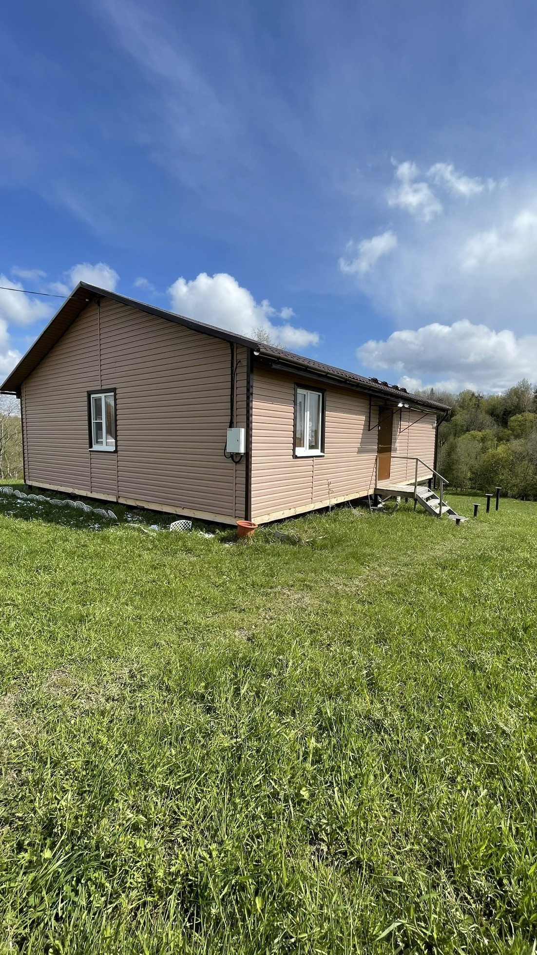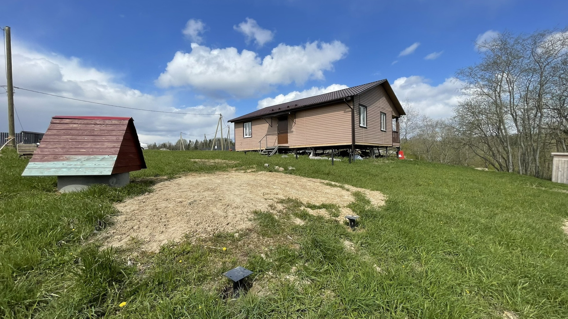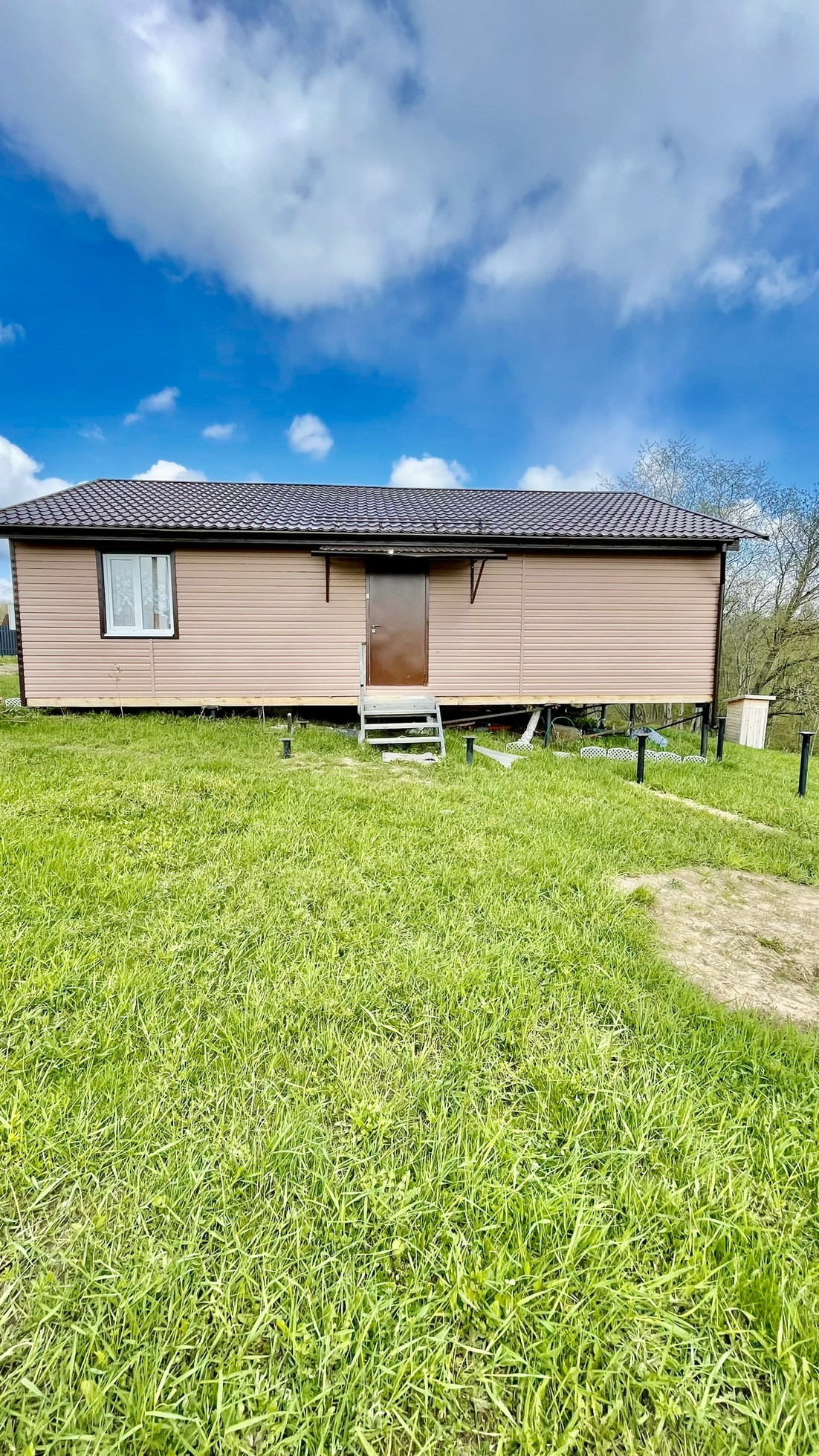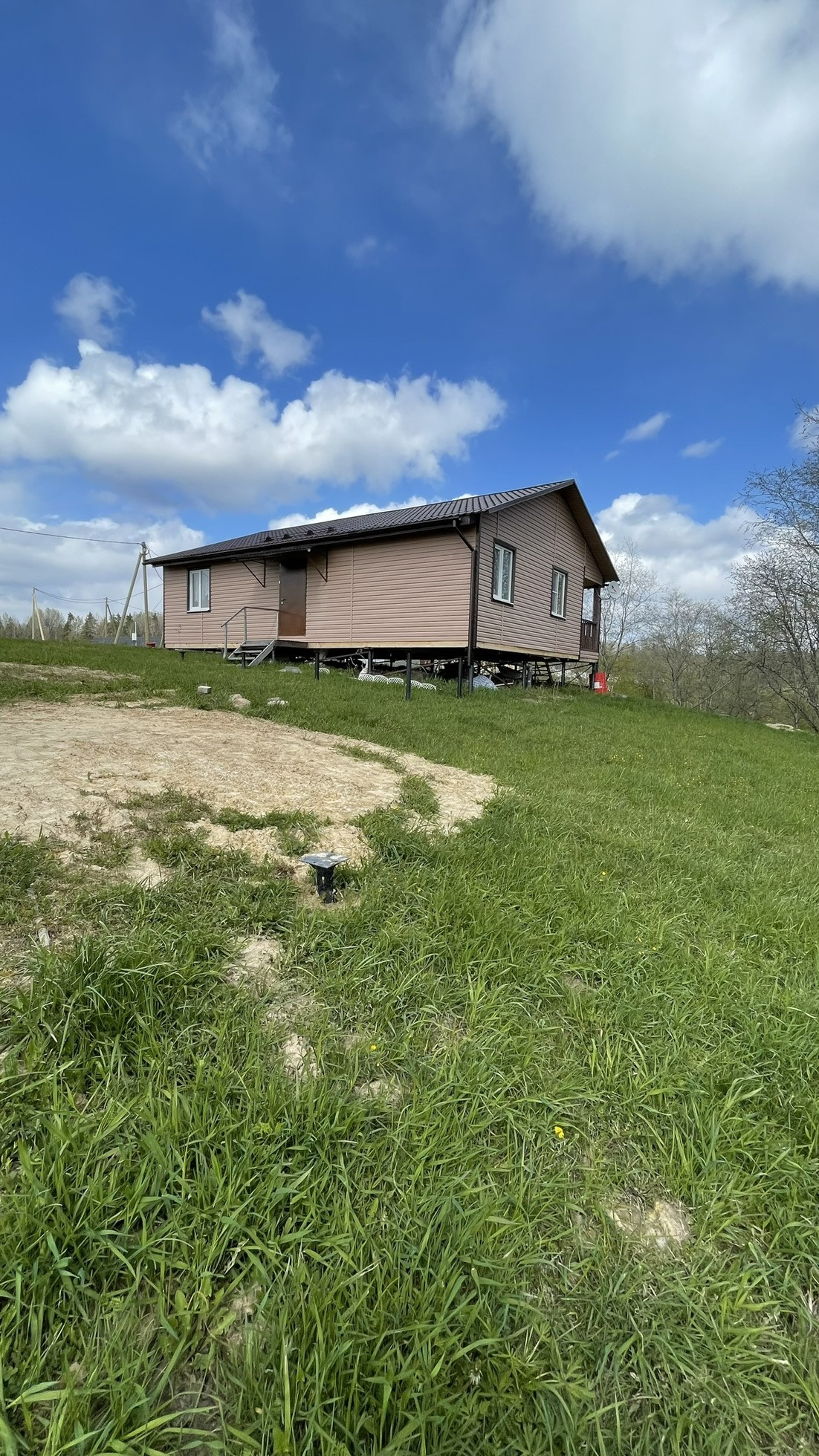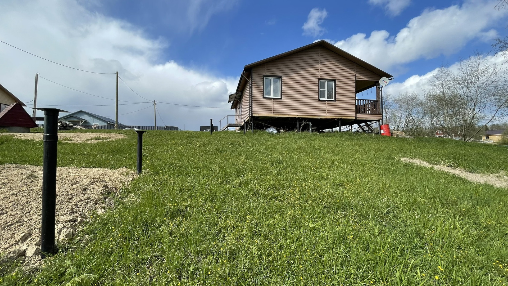 По замыслу собственника должна быть построенная веранда и баня, сваи для этих целей вкручены! При желании можно построить еще один дом!