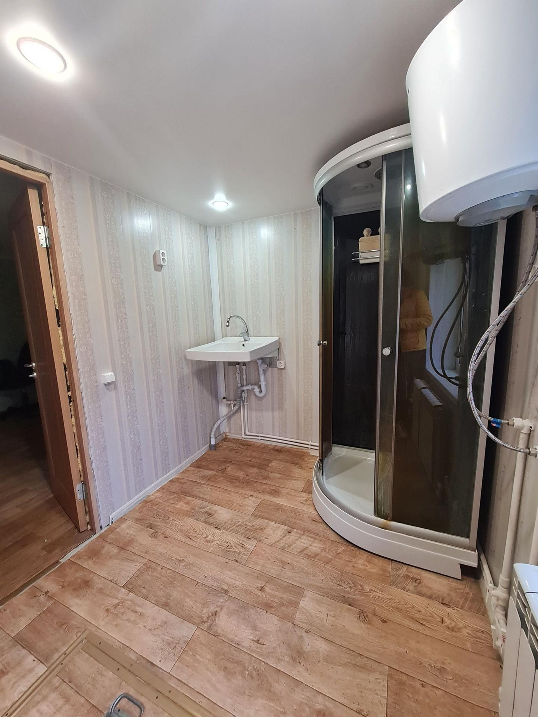 Газовое отопление (двухконтурный котёл) Вода- скважина 12 метров. Есть канализация из бетонных колодцев отстойников. Фундамент- пол дома бутовые столбы с бревенчатой забиркой и пол дома металлические сваи. Стены-пол дома из бревна диаметром 220 мм и пол дома 2 ые OSB с утеплителем