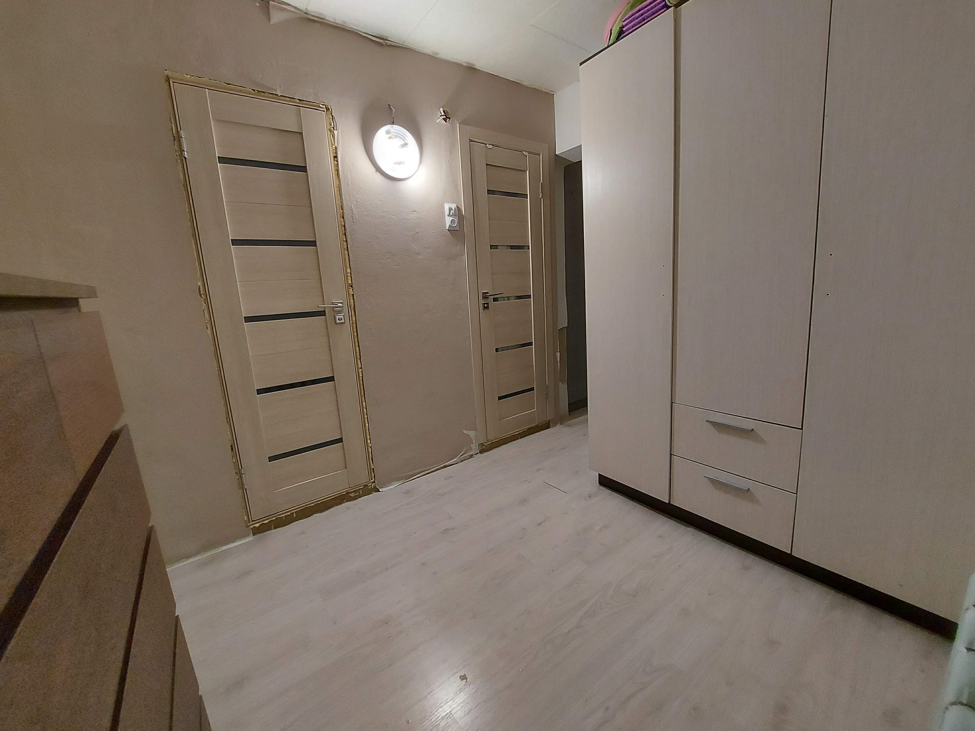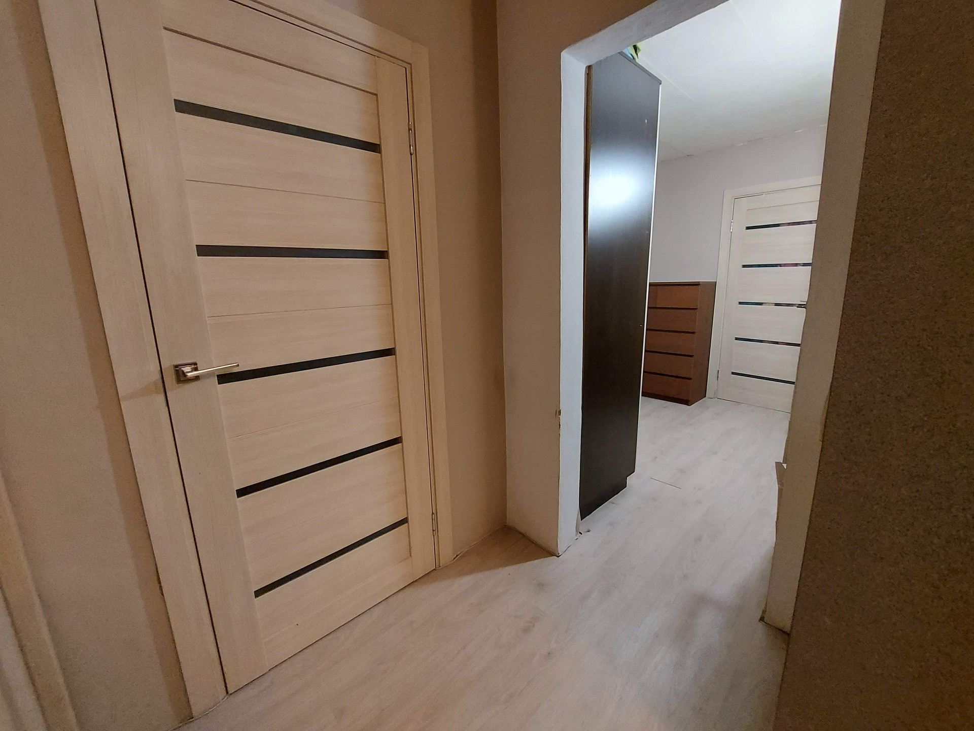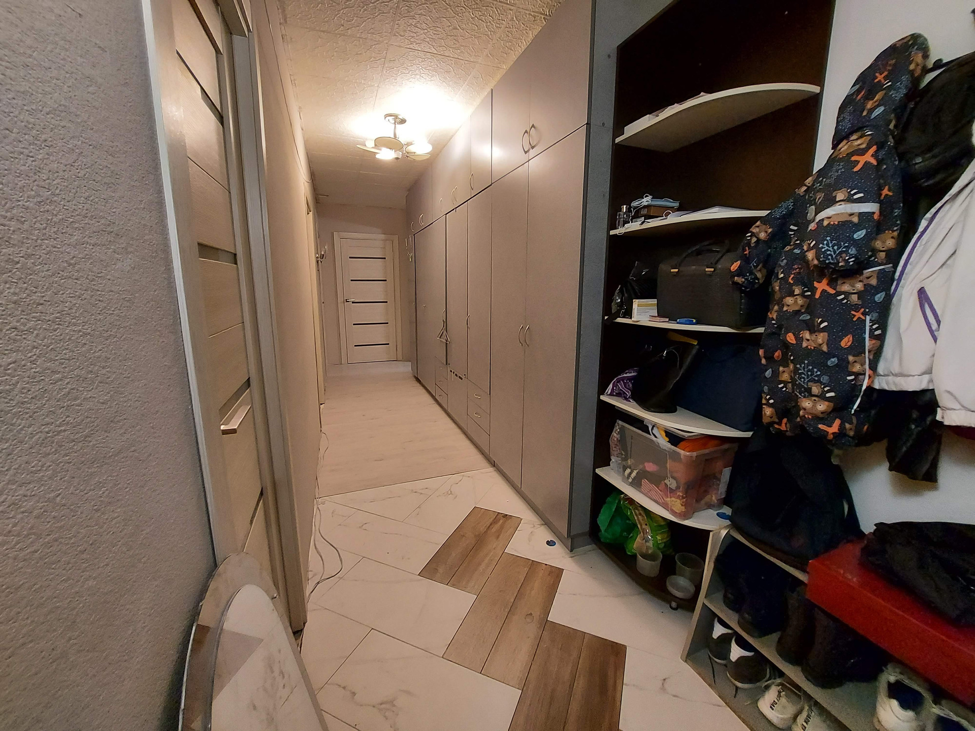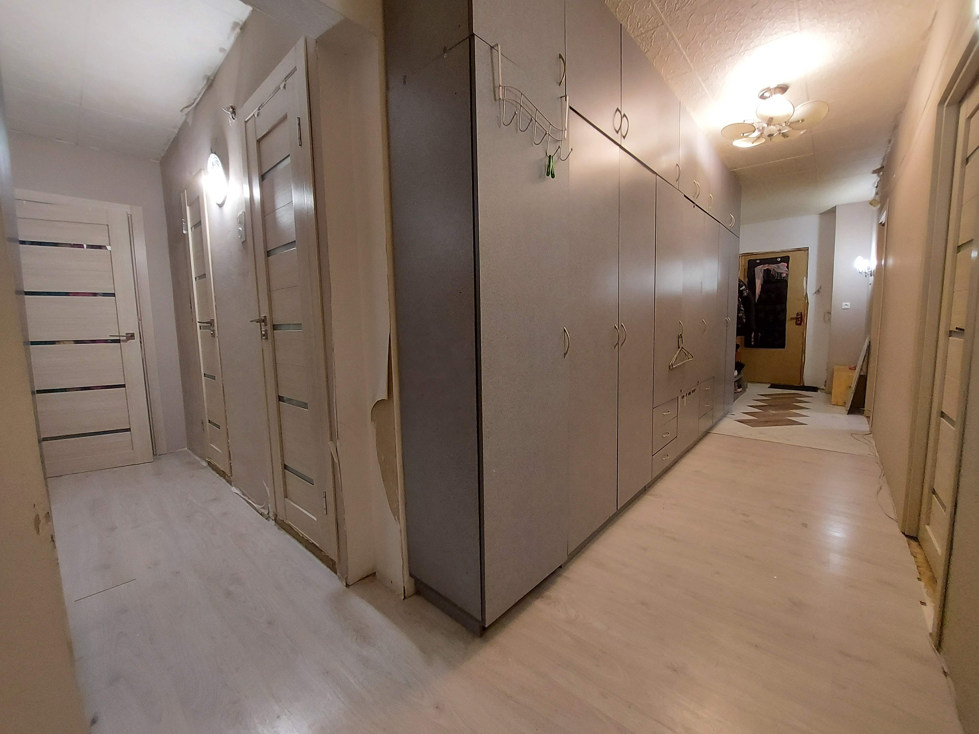 Широкий кродор выполняет функцию хранения, за счёт чего в комнаты освожжаються от шкафов.