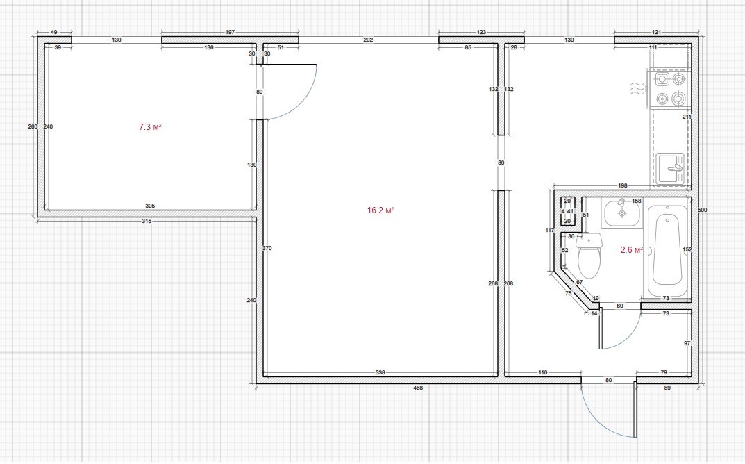 Общая площадь 35.1 кв. м., комнаты 7.3+16 кв.м., кухня 6 кв.м., окна во двор в направлении на юго-запад.