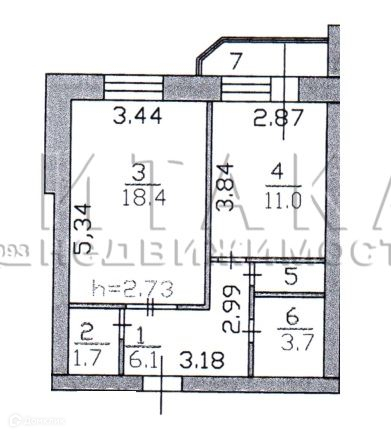 Высота потолков 2.73 м