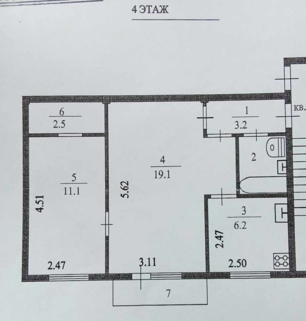 Продается 2-комнатная квартира в самом центре Тосно площадью 45 кв.м., этаж - четвертый. Кухня - 6,2, комнаты- 19,1 и 11,1, балкон-0,7.