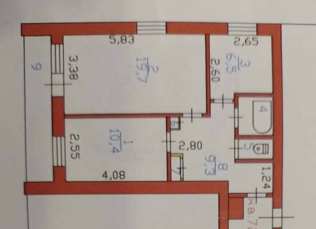 Комнаты 10,4+19,7.