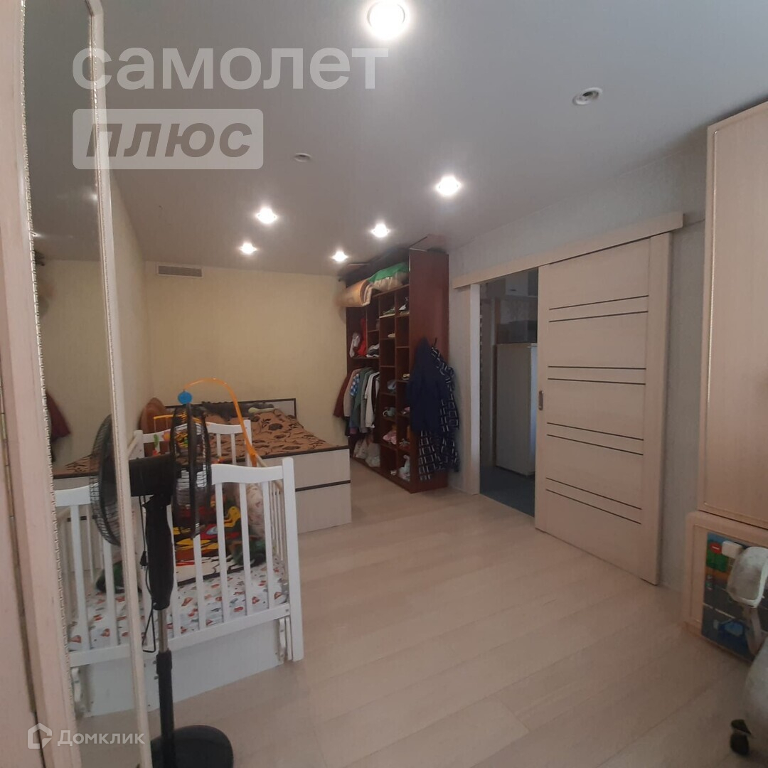 Удачная планировка, окна во двор. Есть просторная гардеробная, одно время использовалась как комната для ребенка.