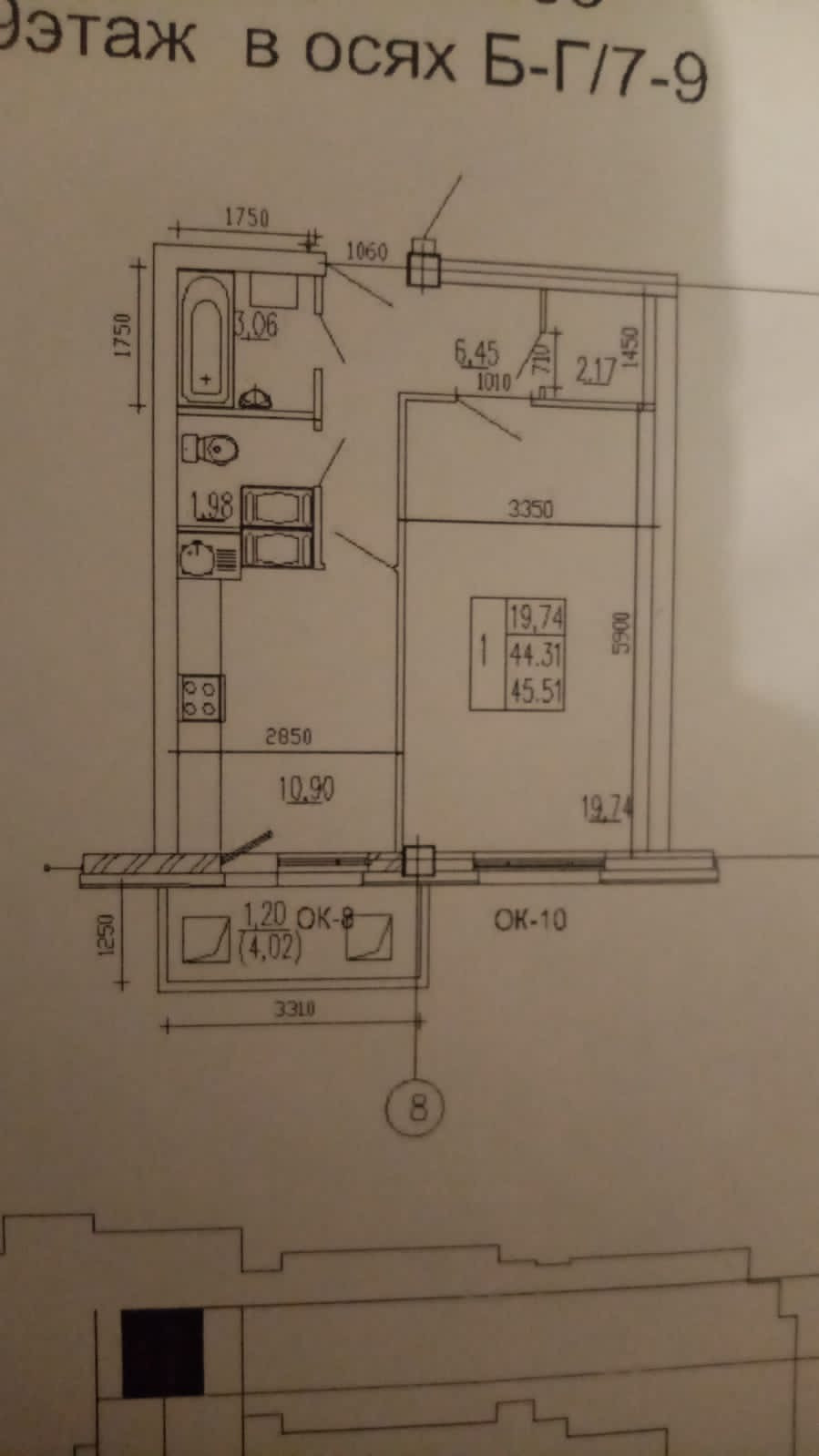 Общая площадь 43.6 м2