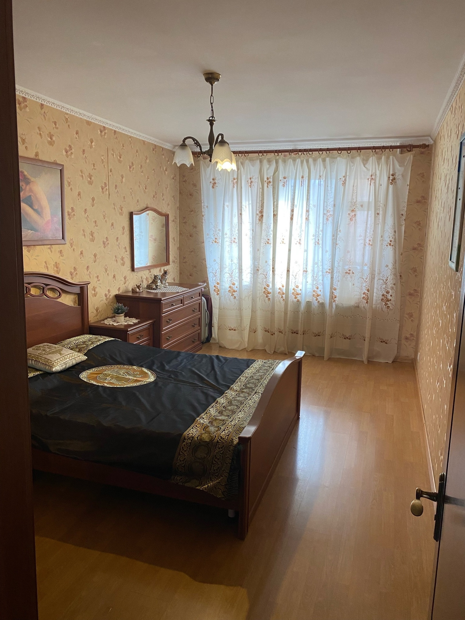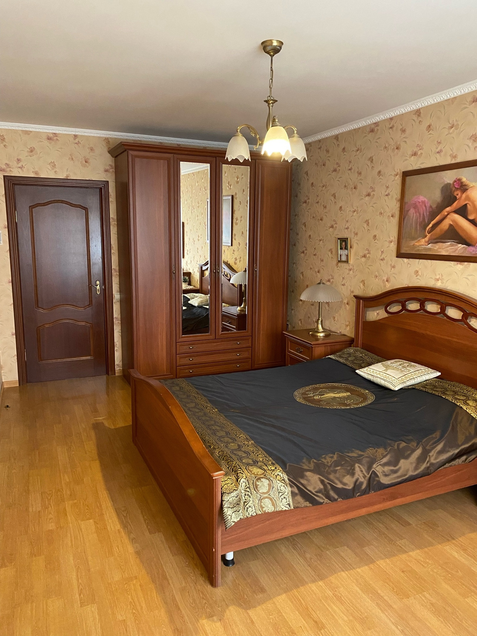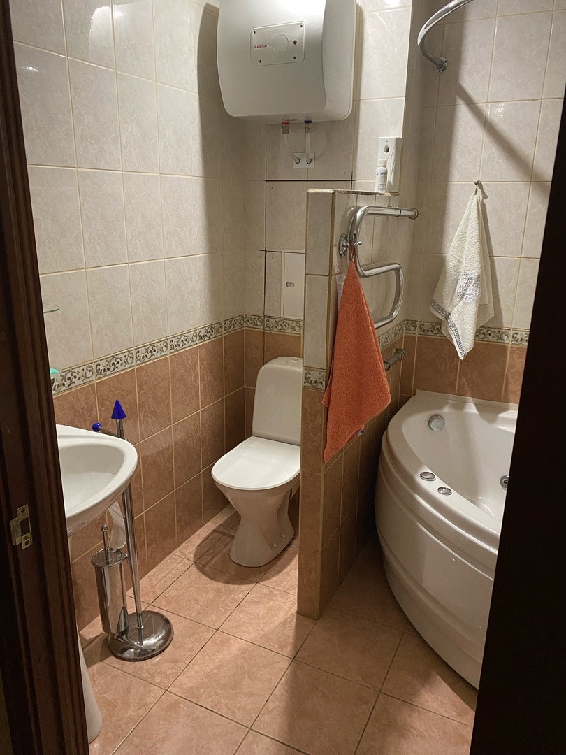 Косметический ремонт, французский ламинат, испанские двери из натурального шпона, испанский кафель, шведская сантехника, стеклопакеты, металлическая входная дверь, лоджия, встроенная кухня из дубового массива.