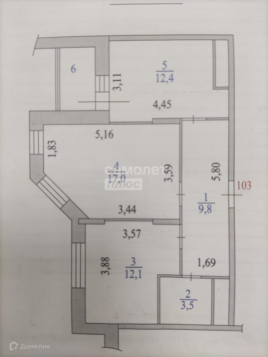 Общая площадь 54.8 м2