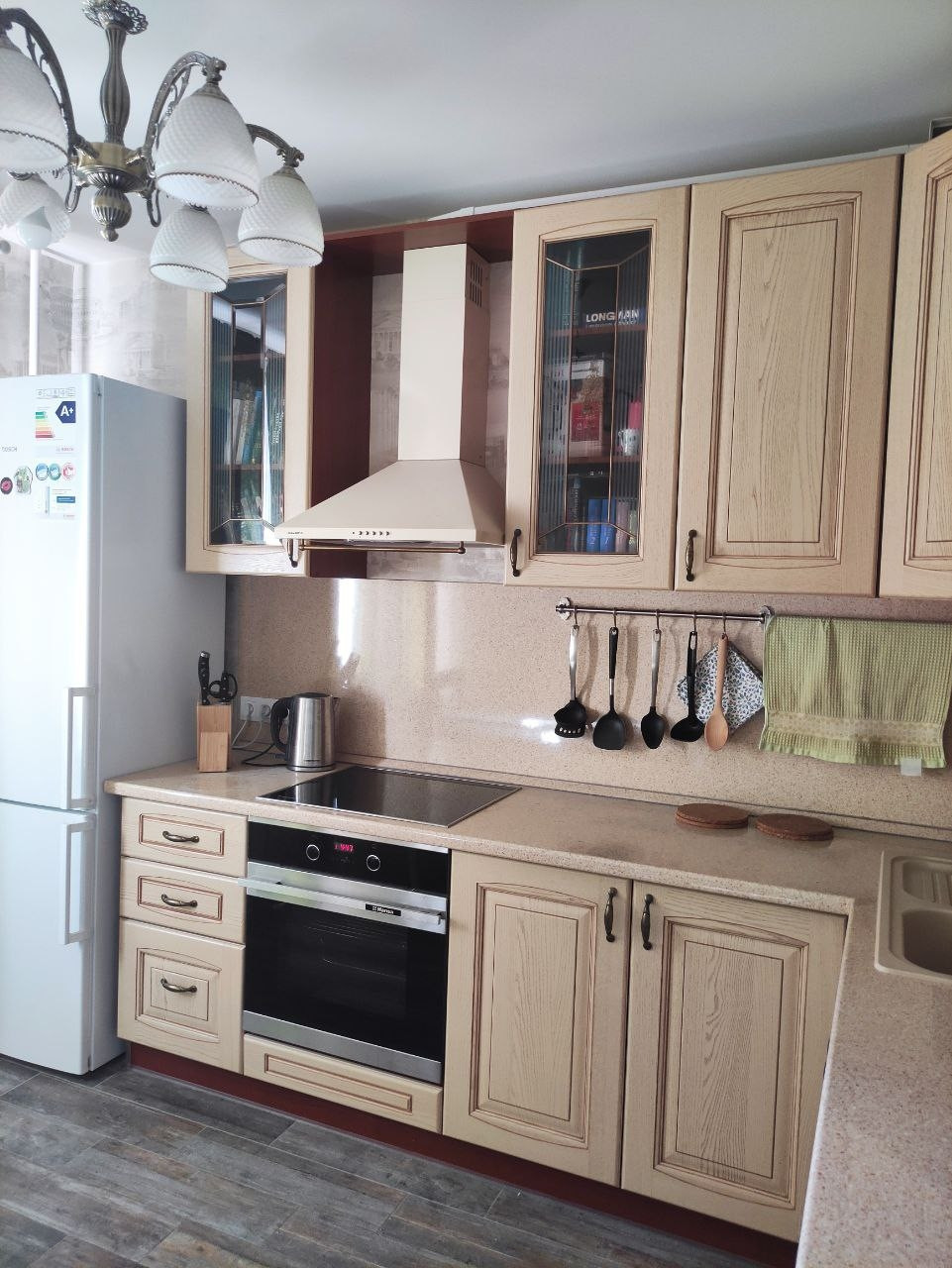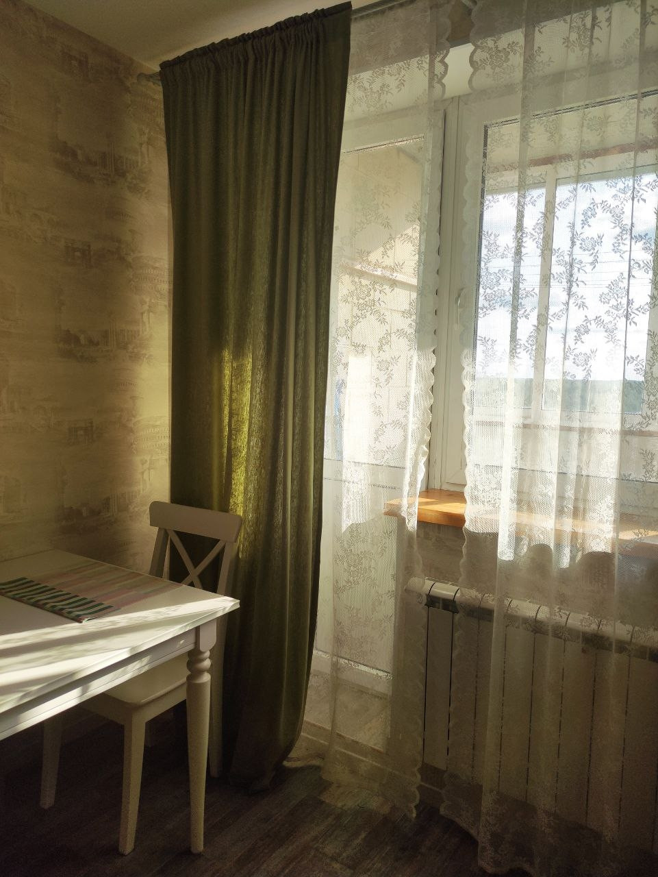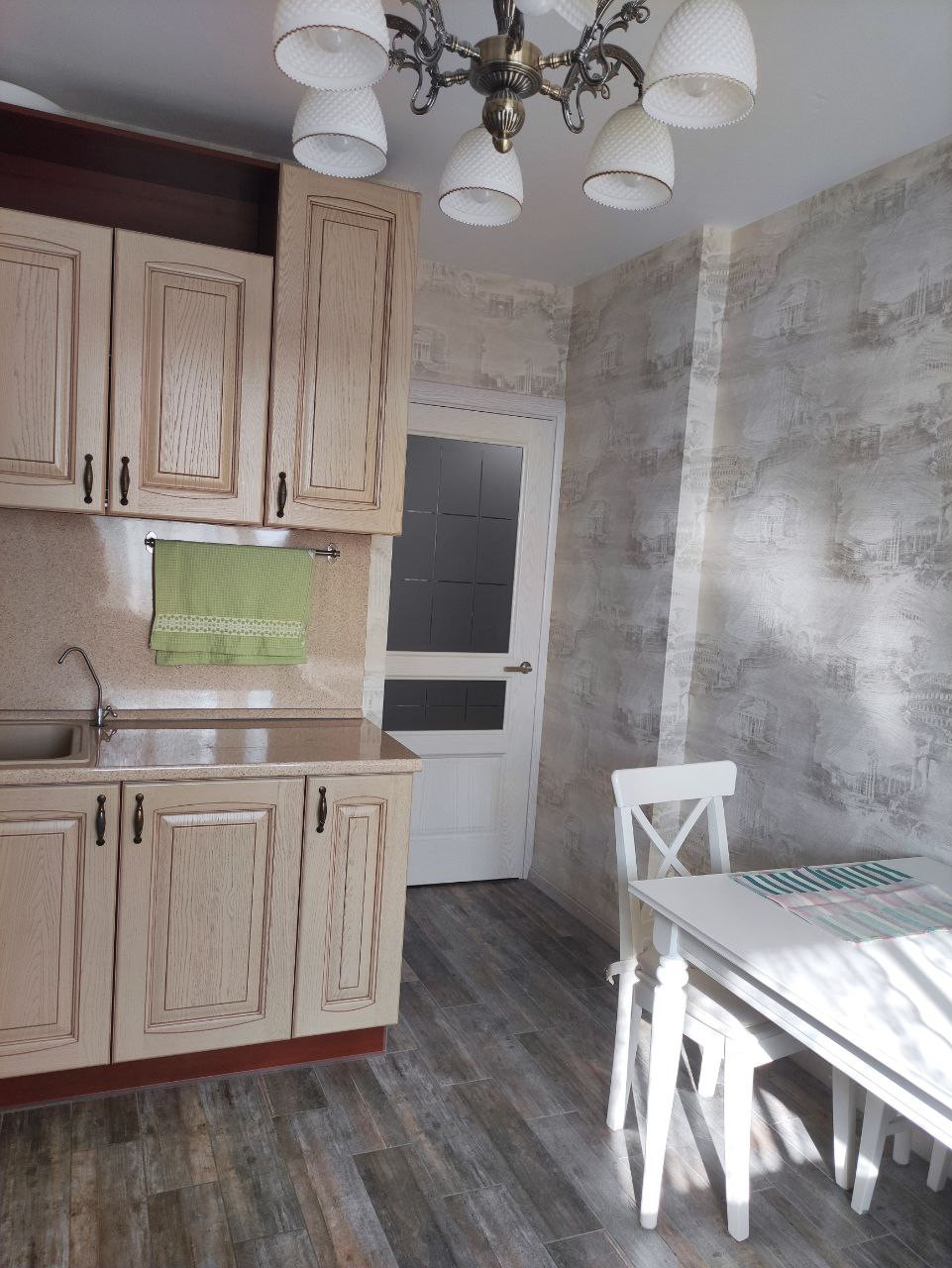 В квартире выполнен качественный евроремонт. В кухне, ванной и прихожей уложена испанская плитка Oset и сделаны теплые полы Energy. Поменяны радиаторы отопления на алюминиевые 12ти секционные. Деревянные подоконники, двери Океан и итальянская кухня из массива дерева делает квартиру по-настоящему уютной. В ванной комнате установлены бойлер, водяной сушитель и чугунная ванна Roca. Прихожую дополняет вместительная кладовая, 6 кв м, со встроенным двухстворчатым шкафом IKEA. А с кухни есть выход на застеклённую лоджию. В комнате уложен ламинат, использовано комбинированное освещение: светодиоды + люстра, имеется двуспальный диван Орматек с ортопедическим матрасом.