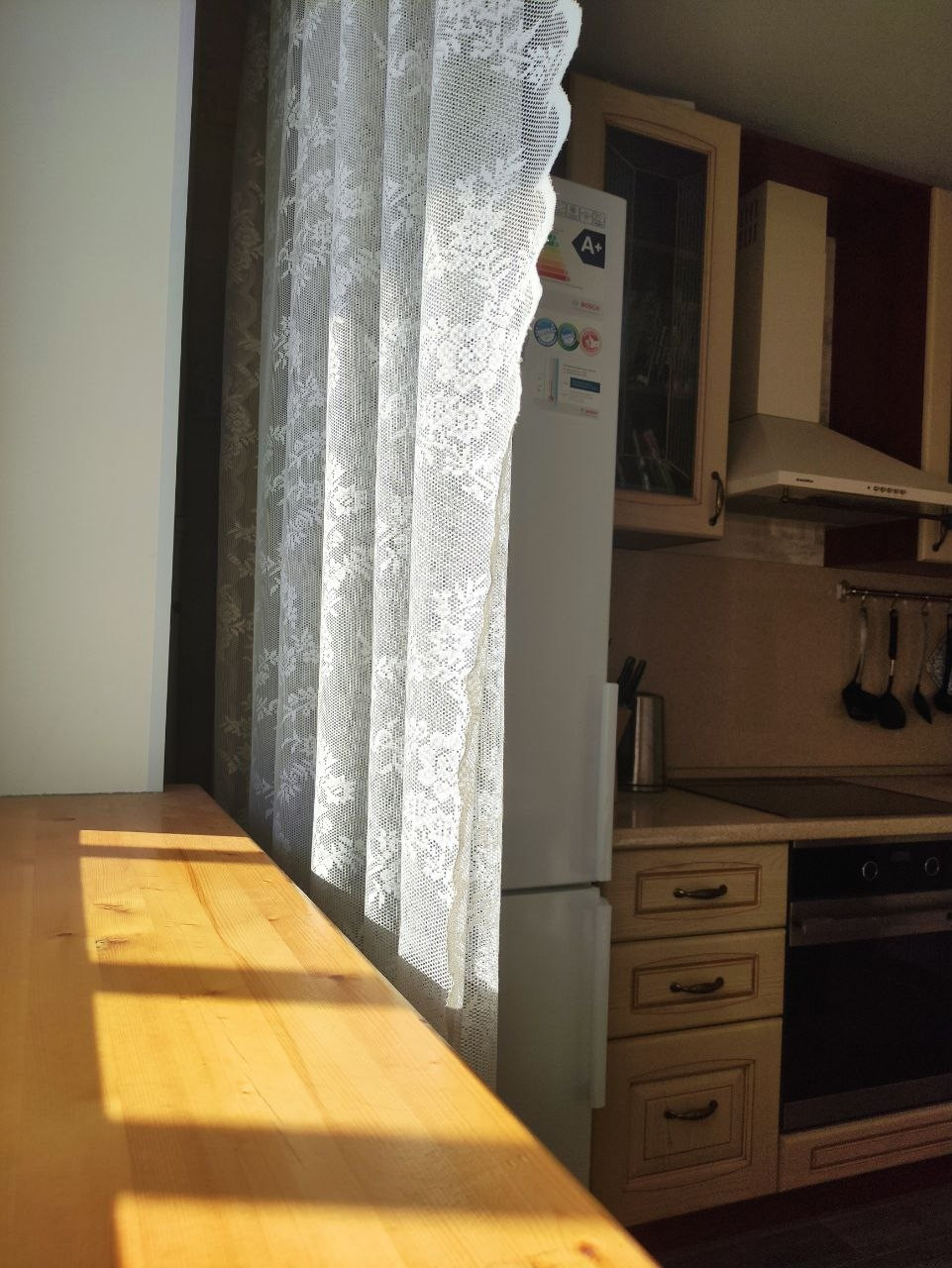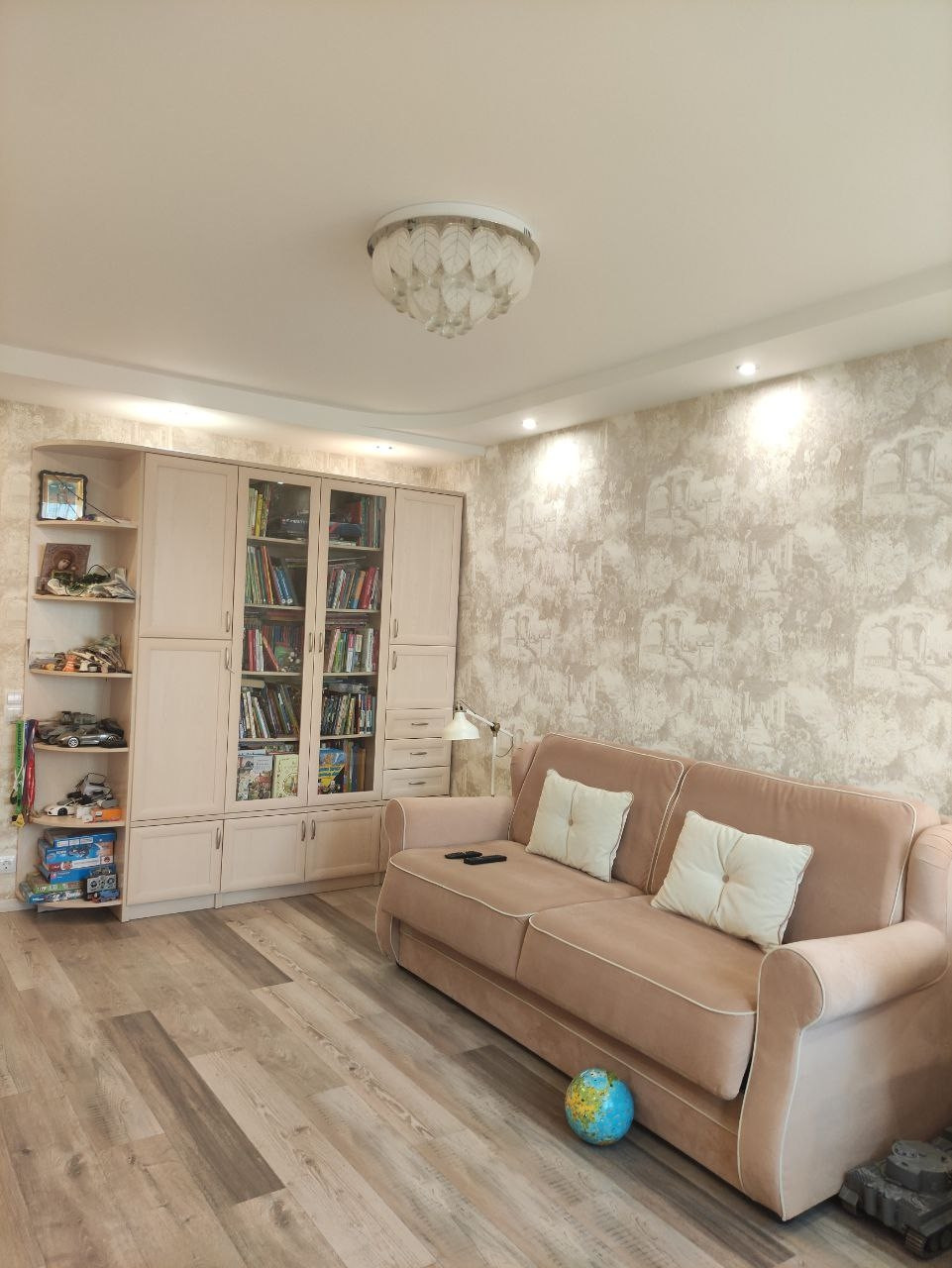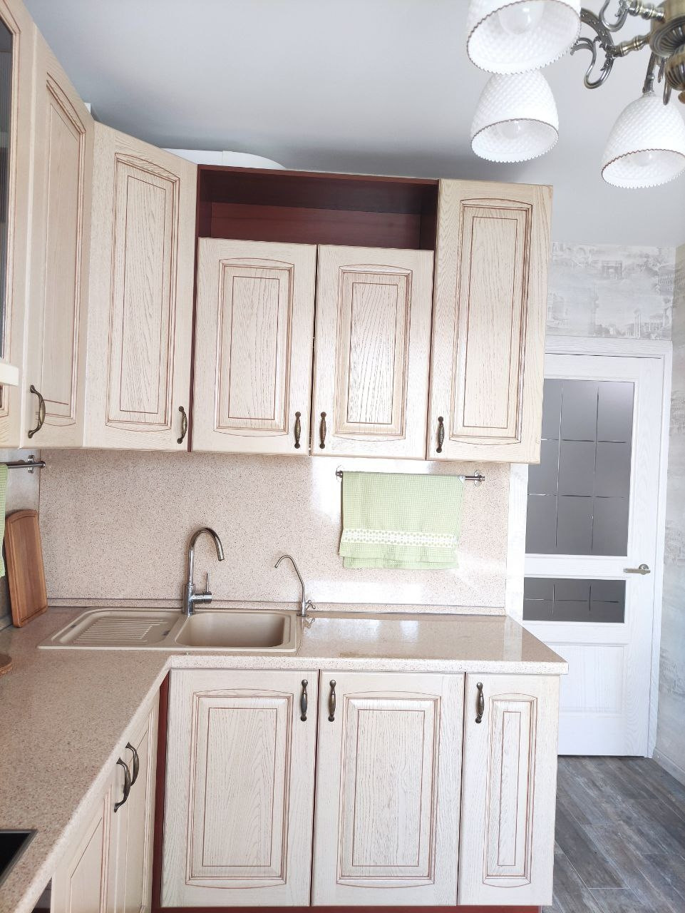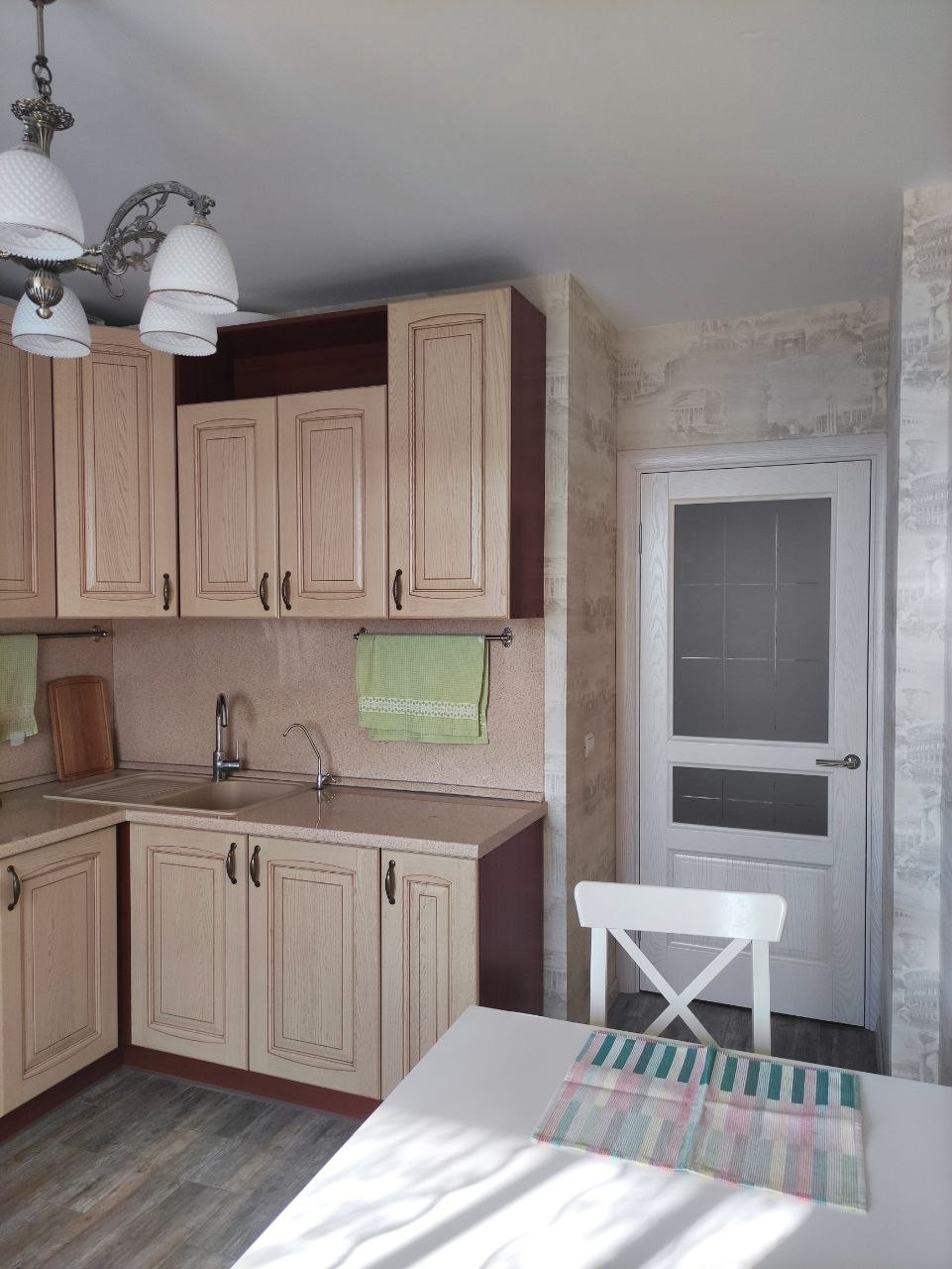 В квартире выполнен качественный евроремонт. В кухне, ванной и прихожей уложена испанская плитка Oset и сделаны теплые полы Energy. Поменяны радиаторы отопления на алюминиевые 12ти секционные. Деревянные подоконники, двери Океан и итальянская кухня из массива дерева делает квартиру по-настоящему уютной. В ванной комнате установлены бойлер, водяной сушитель и чугунная ванна Roca. Прихожую дополняет вместительная кладовая, 6 кв м, со встроенным двухстворчатым шкафом IKEA. А с кухни есть выход на застеклённую лоджию. В комнате уложен ламинат, использовано комбинированное освещение: светодиоды + люстра, имеется двуспальный диван Орматек с ортопедическим матрасом.