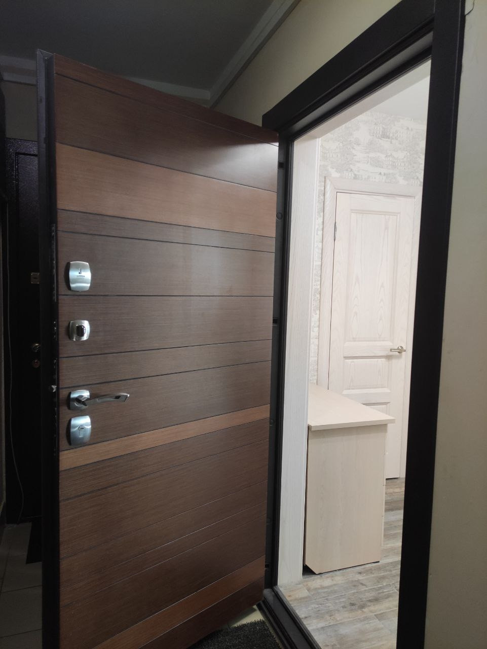 Дом монолитный, построен по современным технологиям в 2012 году. Имеется два лифта: грузовой и пассажирский. На этаже квартира, вместе с двумя соседними, располагаются в отдельном коридоре с металлической дверью.