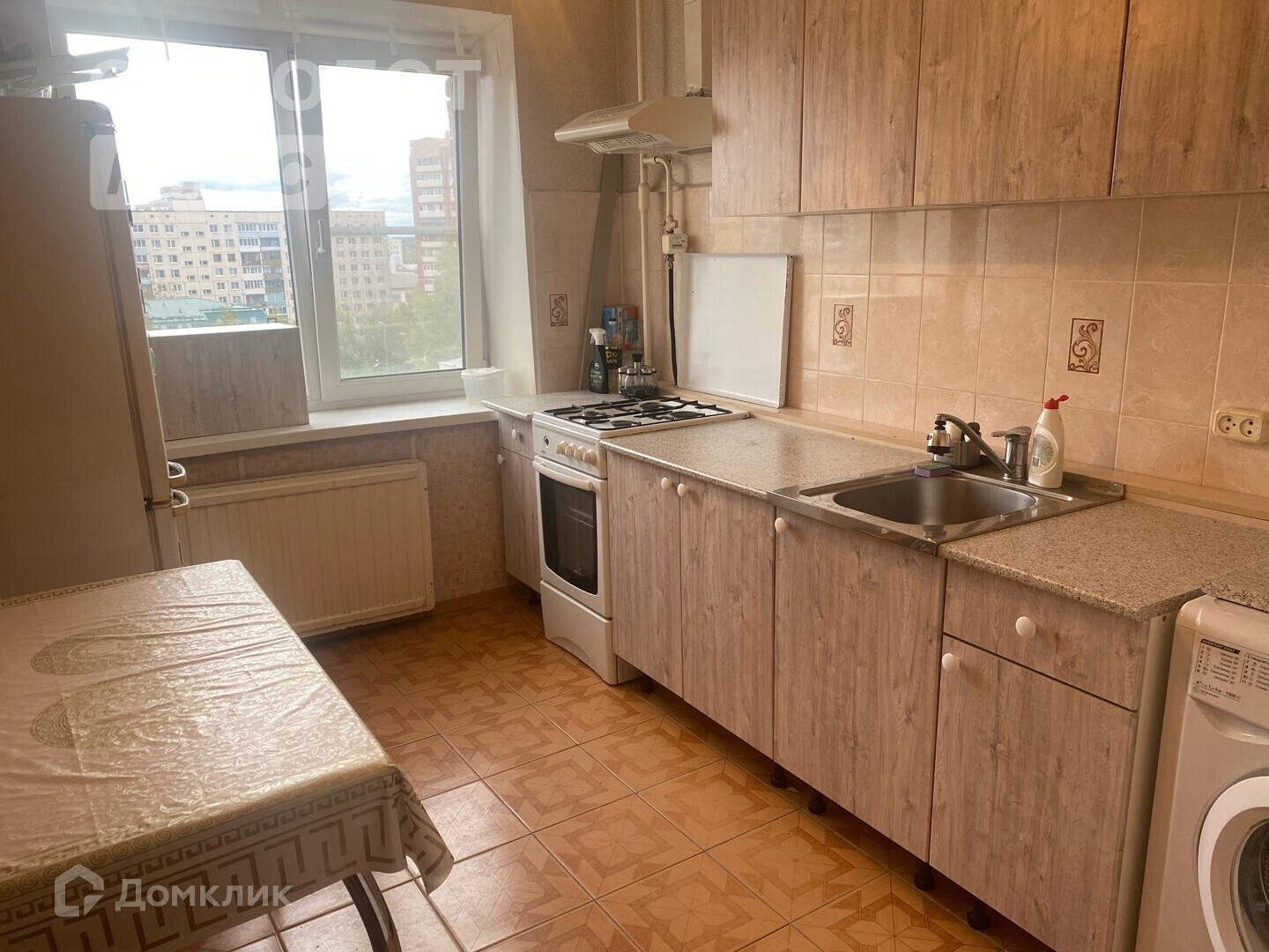 Квартира оборудована всей необходимой для жизни мебелью и техникой: большая двуспальная кровать, раскладные диван и 2 кресла, множество шкафов для хранения вещей, есть антресоль, кухонный гарнитур, столы, стулья, холодильник, стиральная машинка – есть всё, для комфортного проживания.