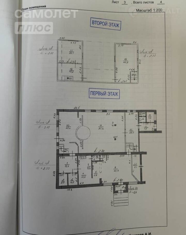 Площадь 1 этажа 260 кв м,площадь второго этажа 76 кв.м.В помещении два санузла.Высота потолков 3,2м.