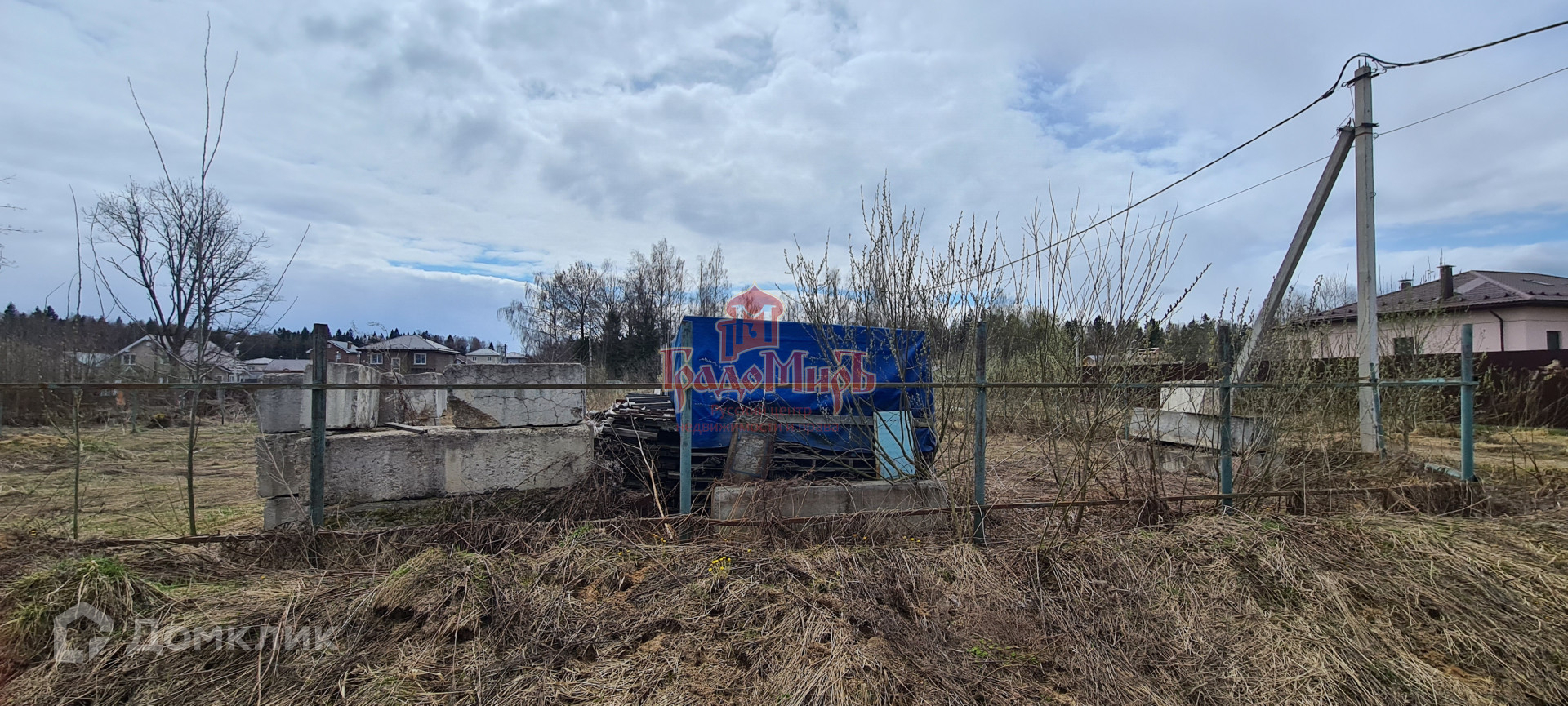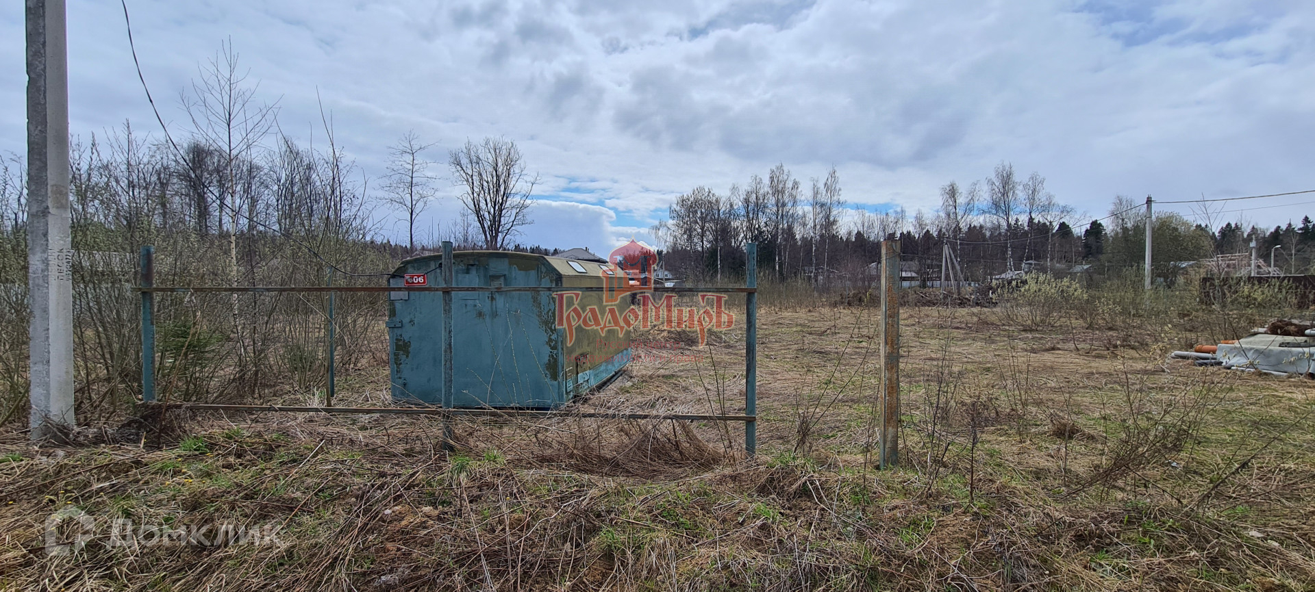 На участке вагончик, частично забор сетка рабица.