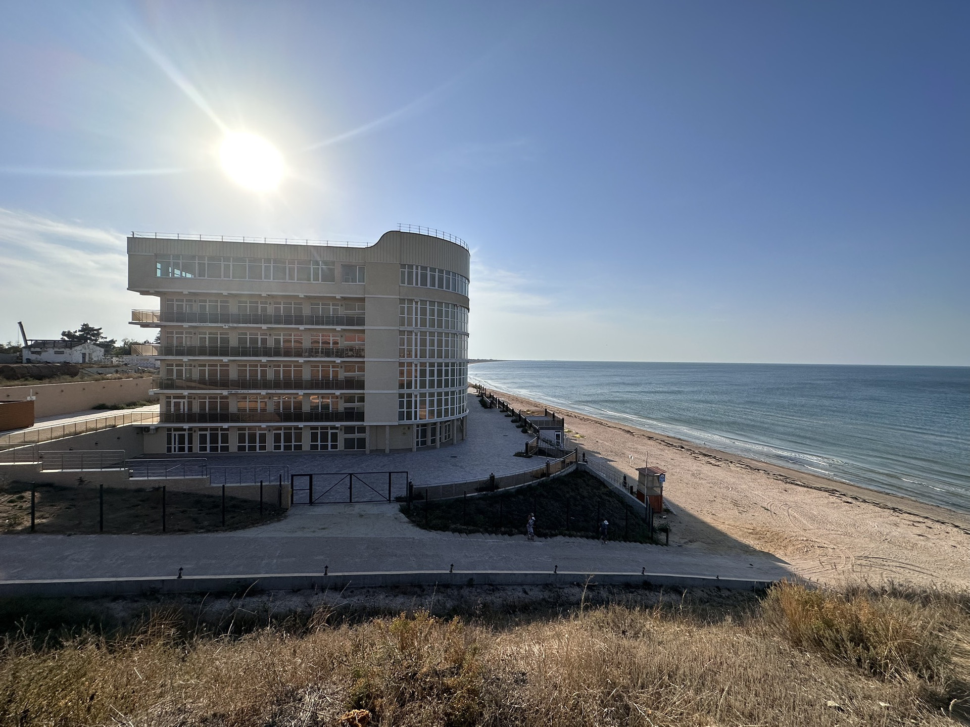 До участков идет асфальтированная дорога. На некоторых участках по периметру участка забор из профнастила. Идёт строительство коттеджного посёлка. Длина пляжа 120 км по арбатской косе.