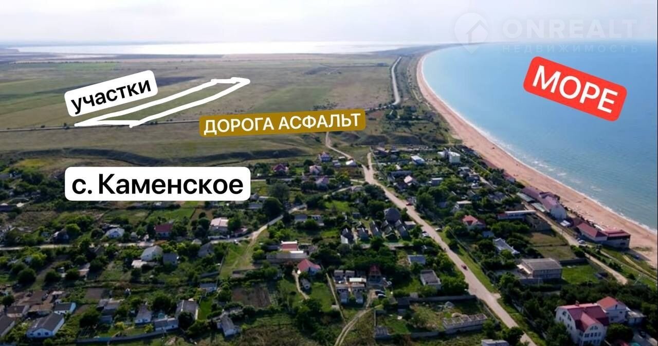 Предлагаем самые лучшие участки, расположены через дорогу С ЛЕВОЙ СТОРОНЫ от села Каменское (не справа где обрыв), до моря 3 мин пешком, электричество проходит на границе с участками.