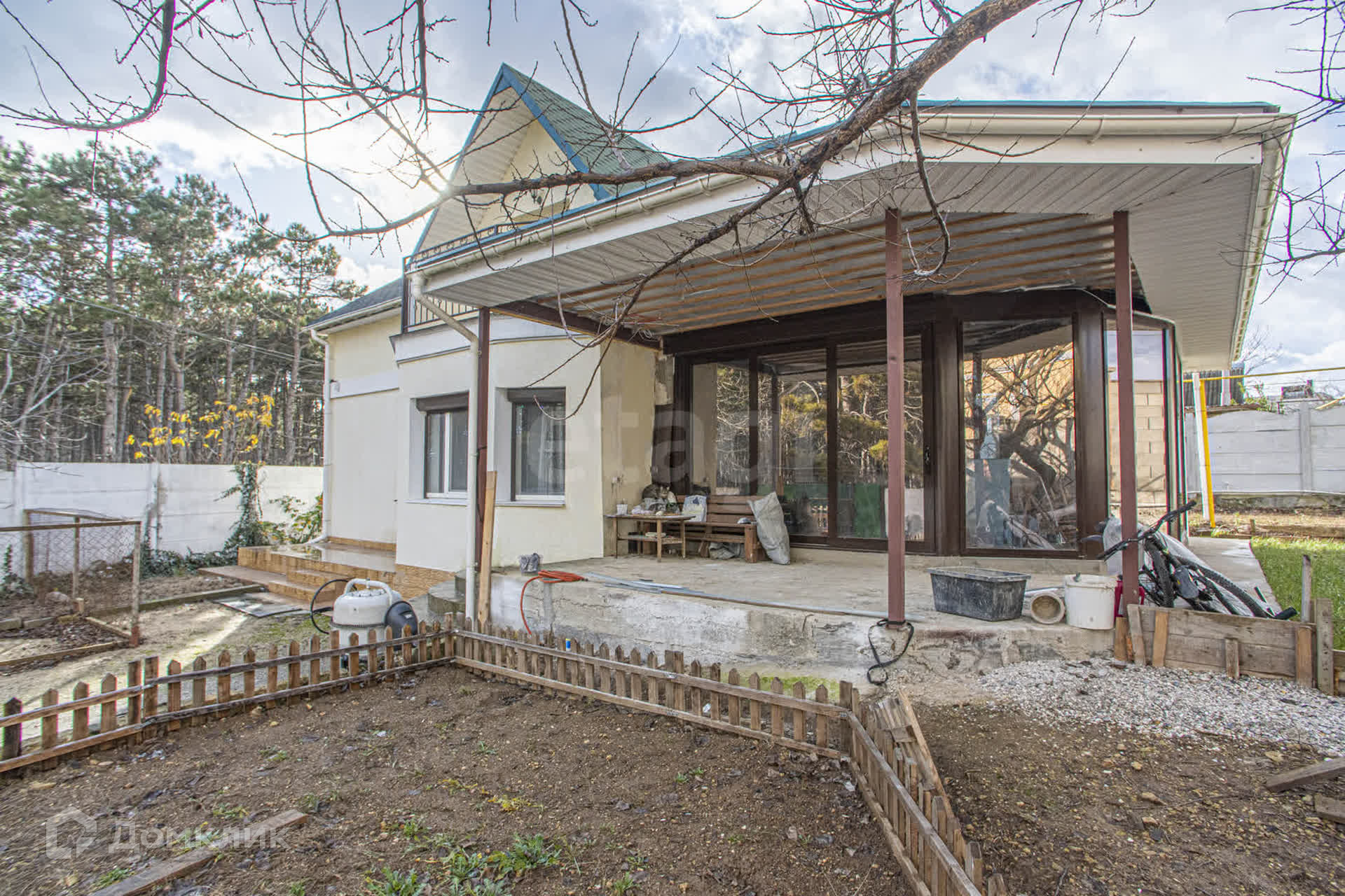На участке располагается гараж, а также великолепная веранда со стоянкой для автомобиля. В доме с балкона открывается живописный вид на сосновый бор. Участок огражден добротным еврозабором,  , а доступ осуществляется через металлические ворота. Территория облагорожена плодовыми деревьями.