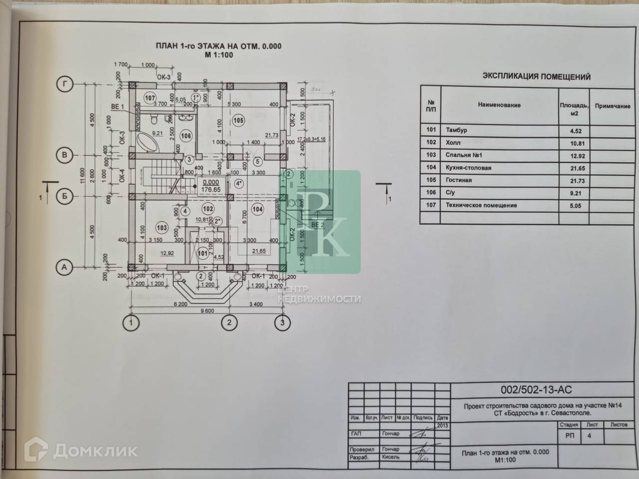 -1 этаж: тамбур 4.5 м², холл 11 м², гостевая спальня 13 м², кухня-столовая 22 м², гостиная 22 м², санузел 9,2 м², техническое помещение 5 м²