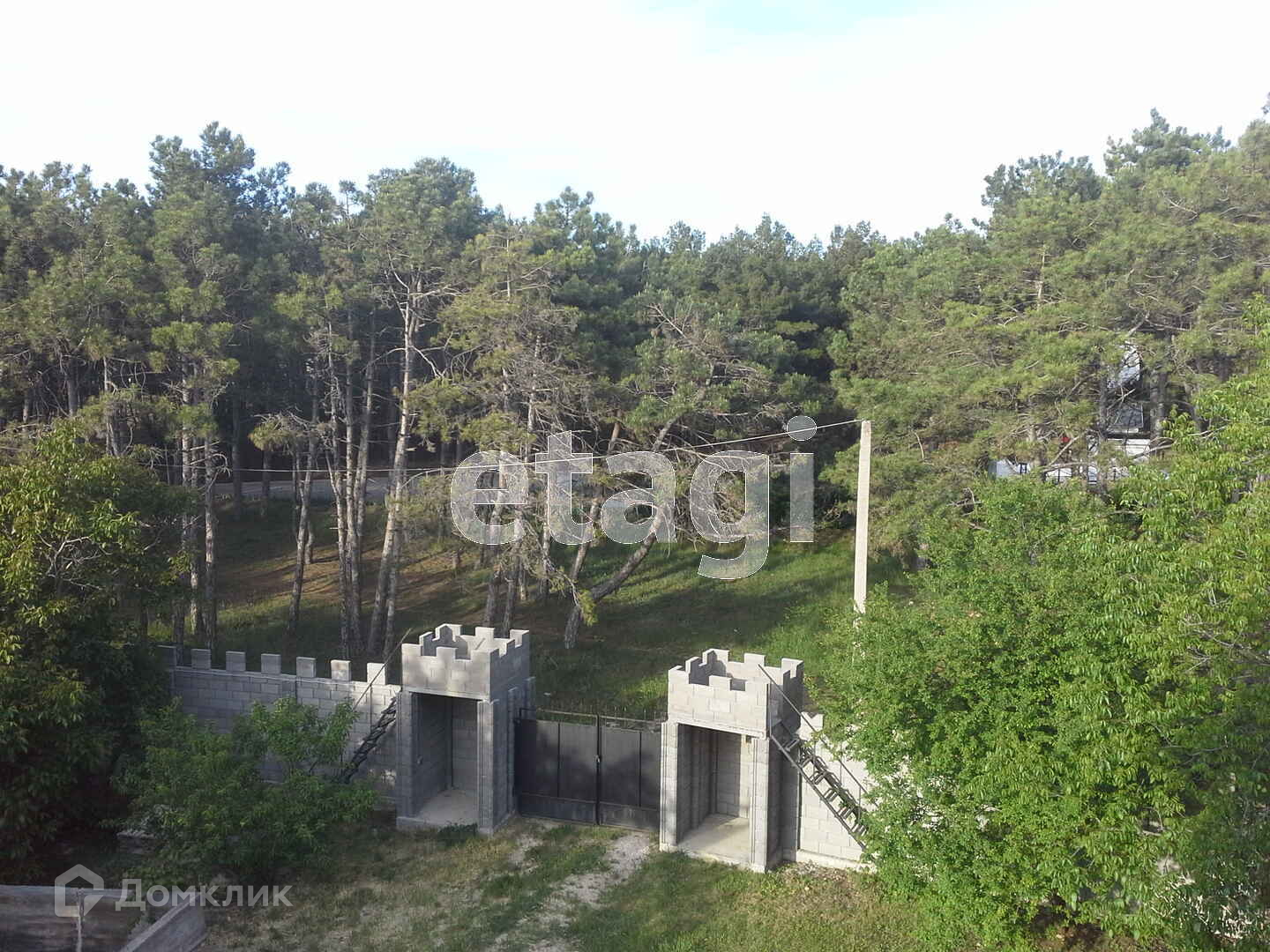 Комплекс строений на территории участка выполнен в стиле 4-х башенного рыцарского замка : въездная группа – 2 «сторожевые» обзорные башни со смотровыми площадками с видом на лес + 3-х метровый забор с зубцами и 3-х этажный дом с 4-мя башнями ( 360,0 кв.м. по наружным границам, жилой площадью 295,1 кв.м.), полностью достроенный и введённый в эксплуатацию в 2019 г., с крышей, увенчанной флюгерами «Кот в сапогах», установлены металлопластиковые окна из энергосберегающего профиля RЕНАU, фурнитура RОТО, энергосберегающие стеклопакеты, цвет кровли и окон выполнен в одной цветовой гамме - мореный дуб. Из окон этого дома открывается прекрасный вид на сосновый лес (с 2-х сторон) и с 3-го этажа – вид на море вдали и на неповторимую красоту севастопольского закатного неба, когда солнце садится в море. Дом «Кот в сапогах» - без внутренней и наружной отделки. По вашему желанию, дополнительно можем заключить договор на отделку дома силами собственной строительной компании. Есть возможность пристройки к дому новых строений (планировались к первому этажу пристроить с одной стороны дома - бассейн+спа-центр, с другой -крытый гараж, а на втором этаже над спа-центром и гаражом сделать большие открытые веранды). Рядом с домом оборудована площадка для стоянки авто.