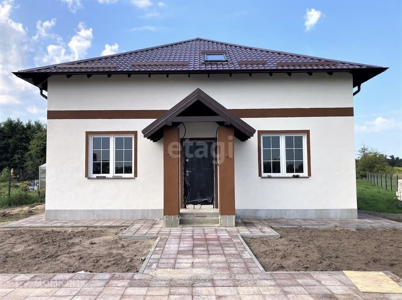 Придомовая территория благоустроенна. Парковочное место, дорожки вымощены плиткой, вокруг дома сделан дренаж, ливневая канализация.