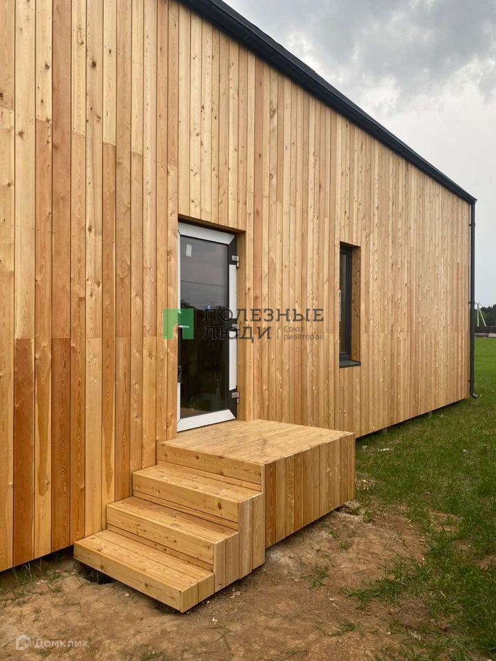 В доме 2 этажа, установлены панорамные окна. На первом этаже расположены просторная кухня-гостиная, спальня с кабинетом (или гардеробной), гостевой сан.узел, выход на веранду (20  кв.м.). На втором этаже 2 спальни с сан.узлом, гостиная с балконом со вторым светом. В доме также имеется котельная с отдельным входом и прачечной, крыльцо со шкафом хранения.