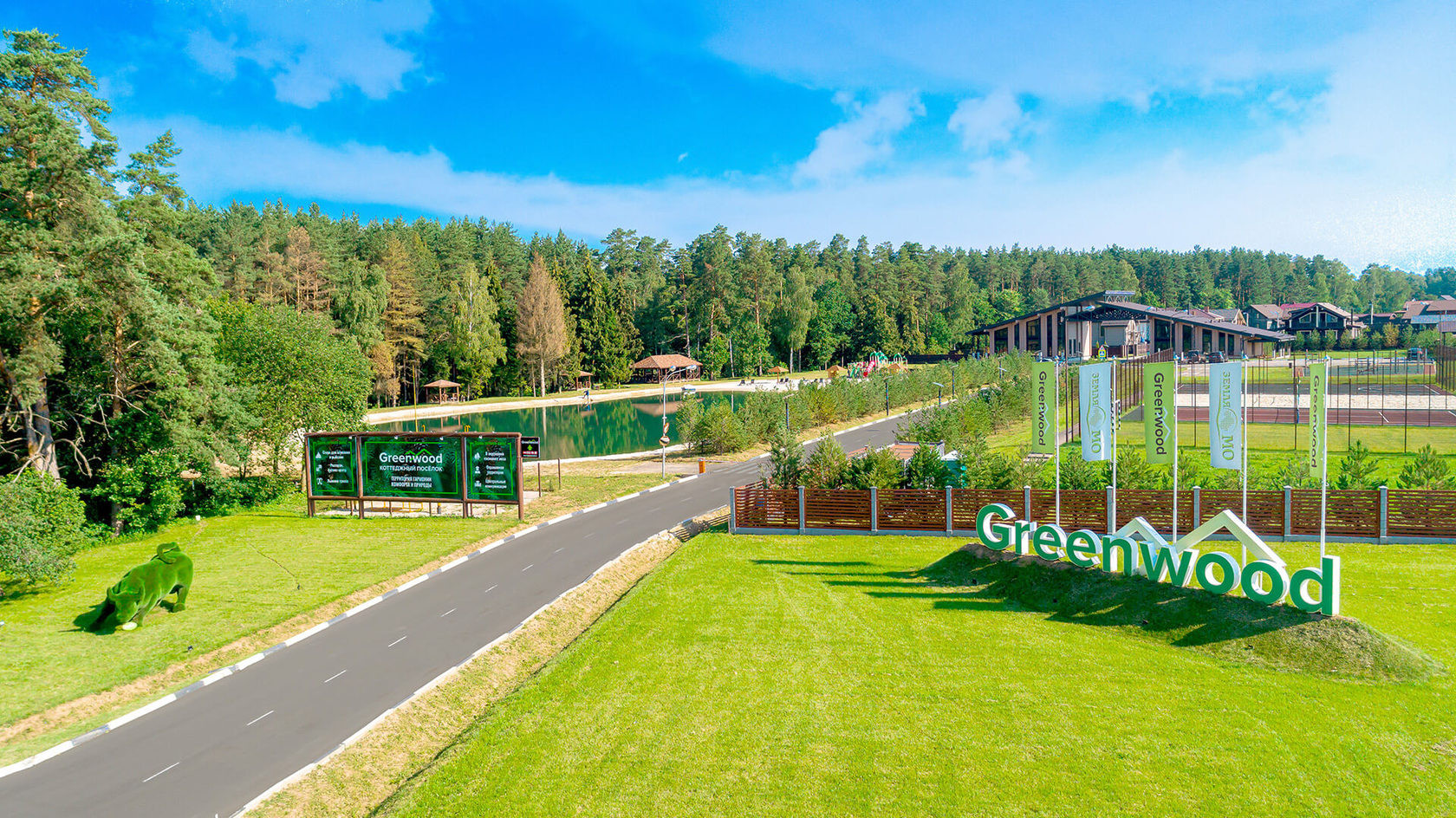 Поселок окружен вековым сосновым лесом, в распоряжении жителей разнообразная инфраструктура: несколько озер, пляжи, спортивные и детские площадки, беседки для отдыха, лесные тропа для прогулки, тюбинговая трасса. Рядом банный и конный комплекс  GrееnНоrsе.