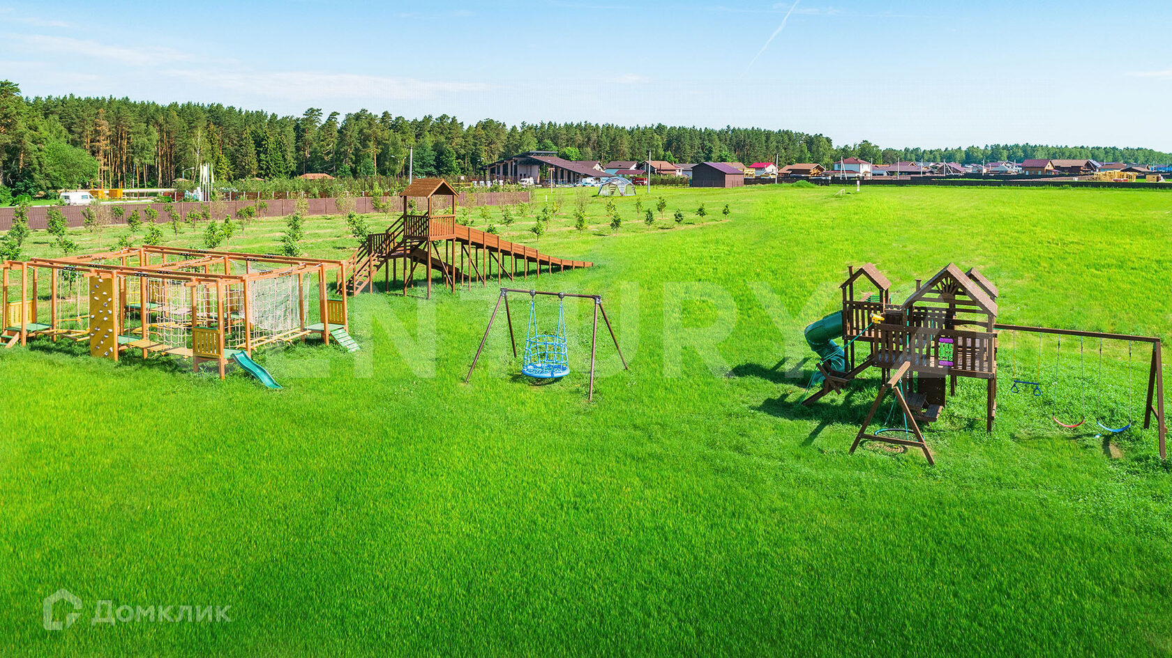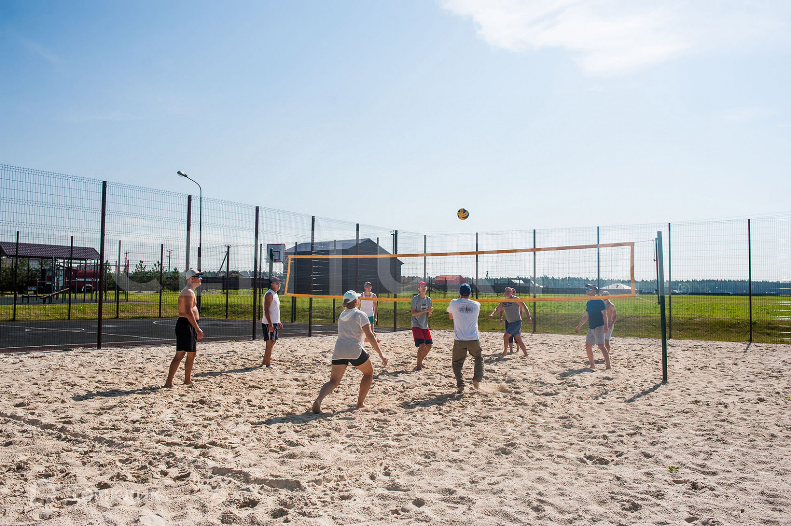 Инфраструктура богатая и продолжает развиваться: на территории поселка есть озеро для купания с песчаным дном, спортивные площадки (футбол, волейбол, теннисный корт), веревочный парк, батуты, детские площадки.