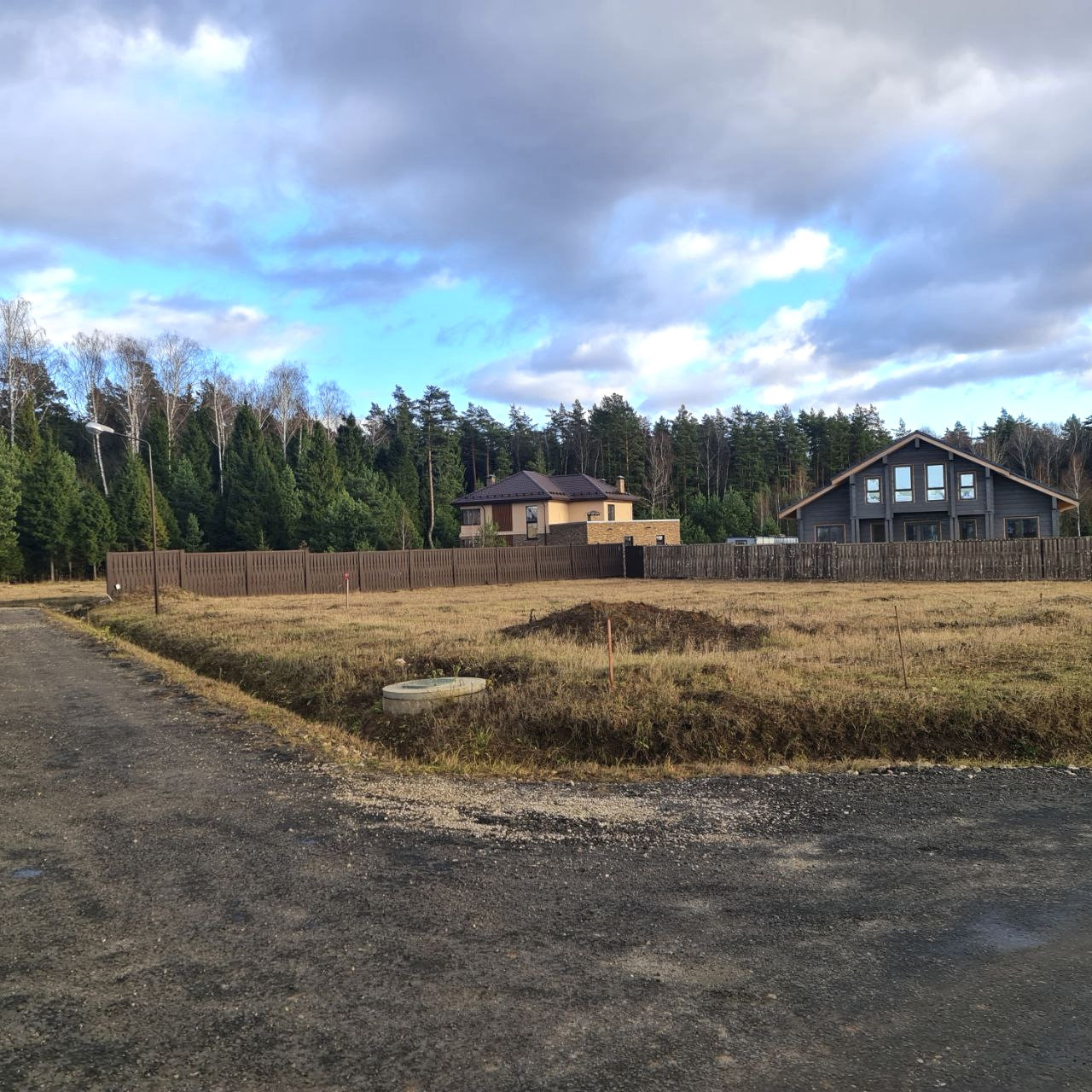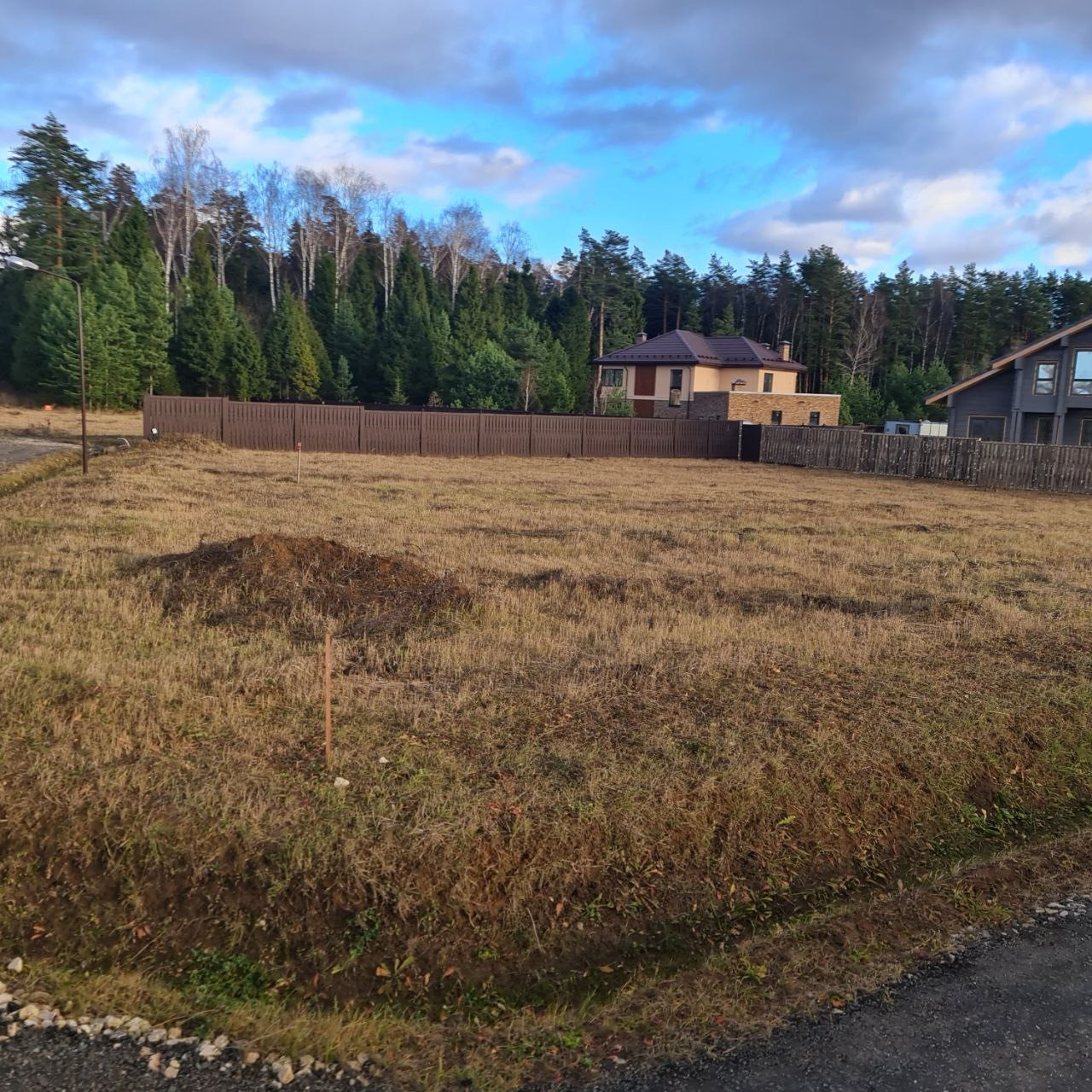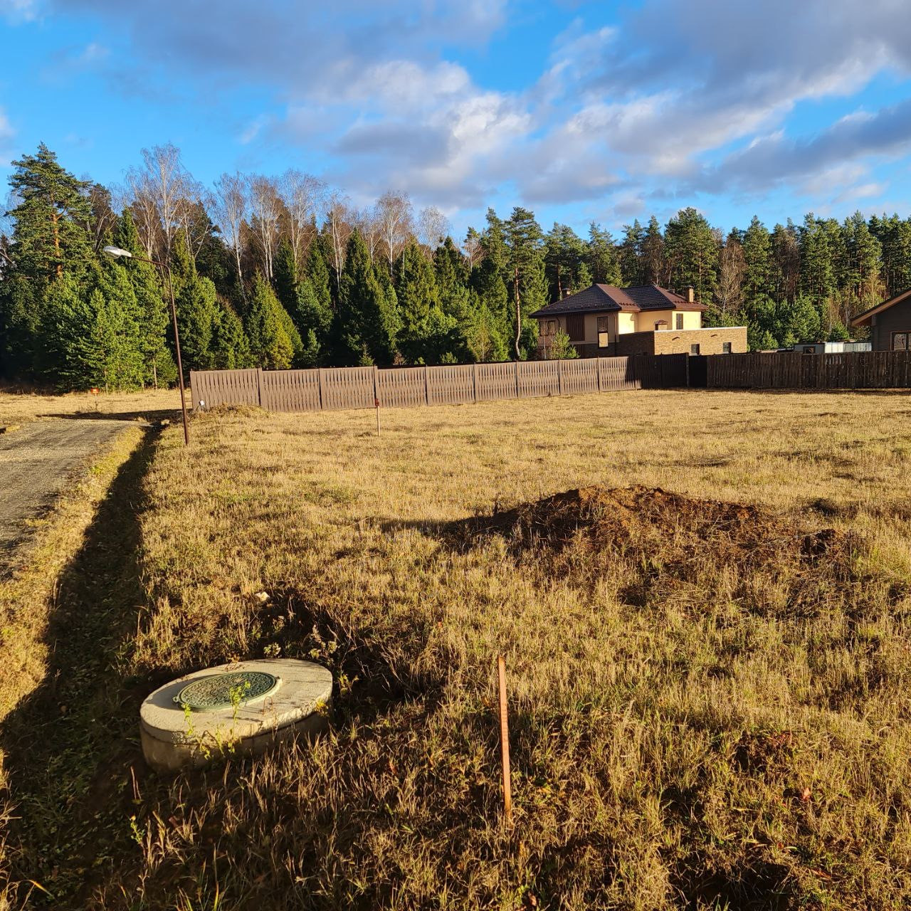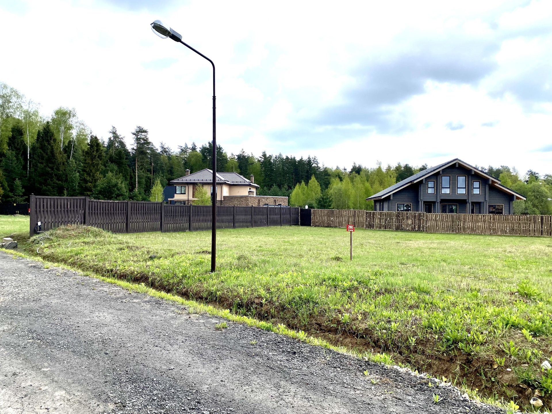 Угловой участок прилегает к лесу (2 линия), что минимизирует количество соседских глаз.