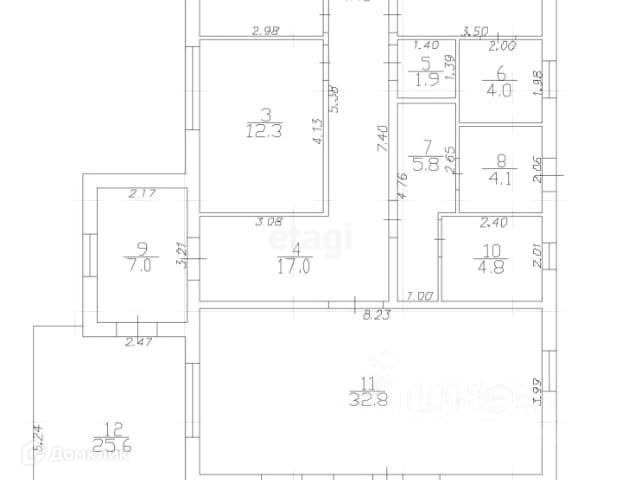 зал/кухня 33 кв.м;