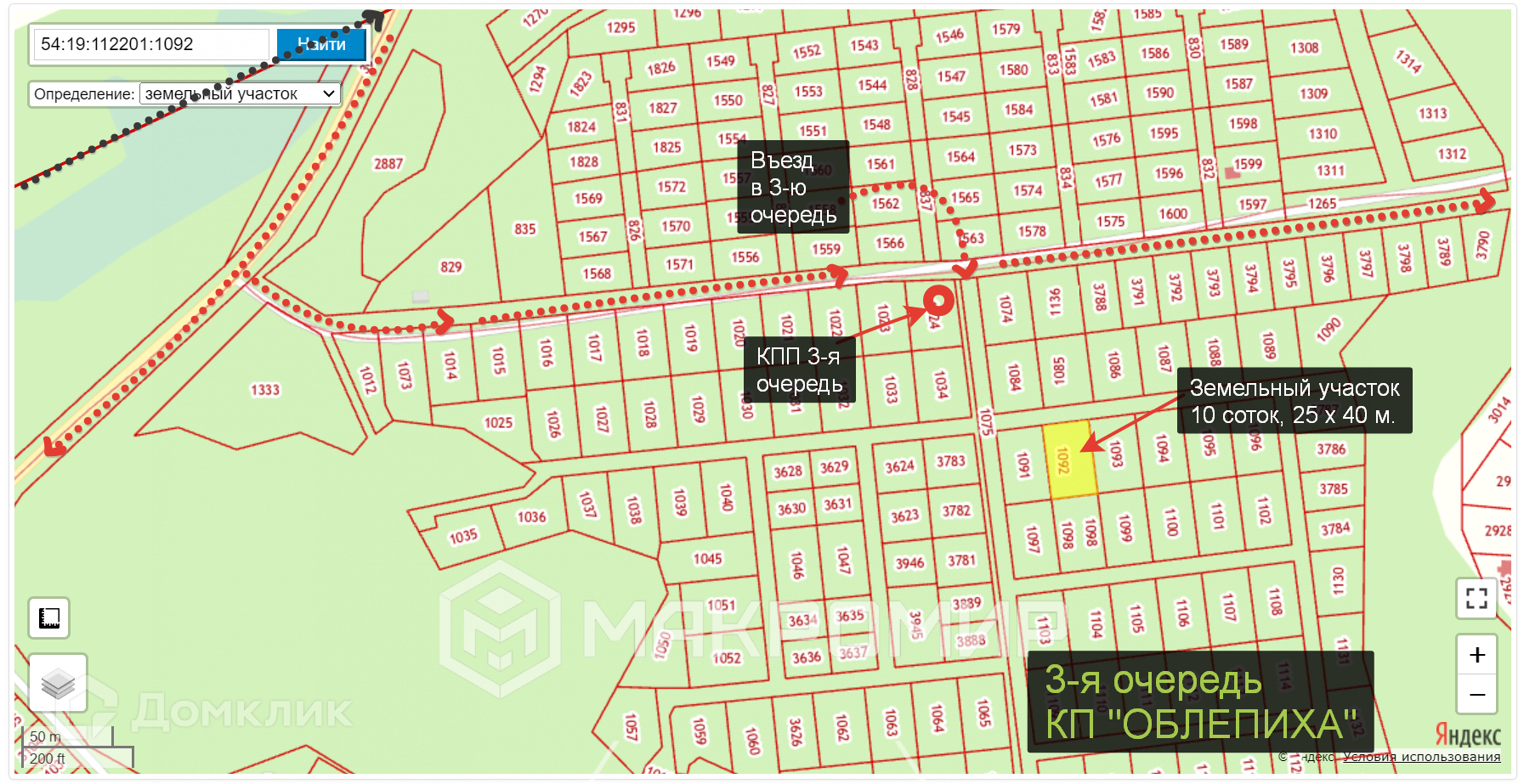 10 соток, 25х40 м., ровный, все коммуникации оплачены - асфальтированные дороги, электричество, водоснабжение.