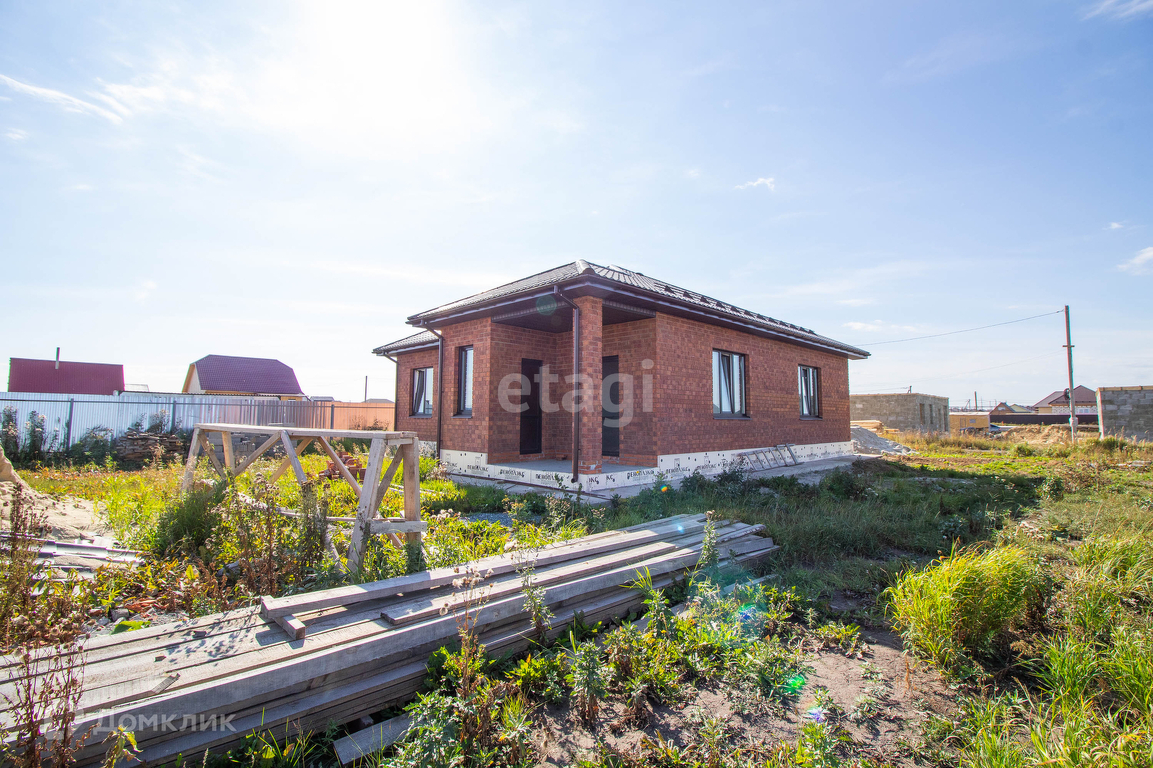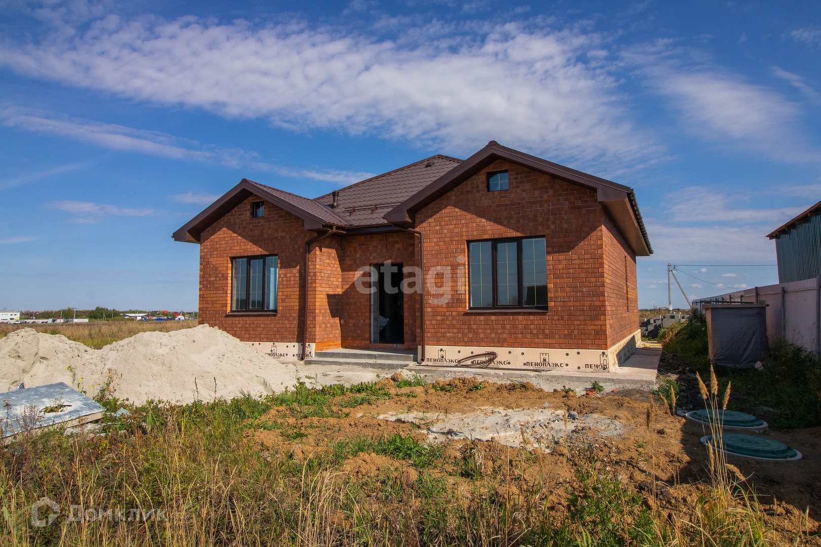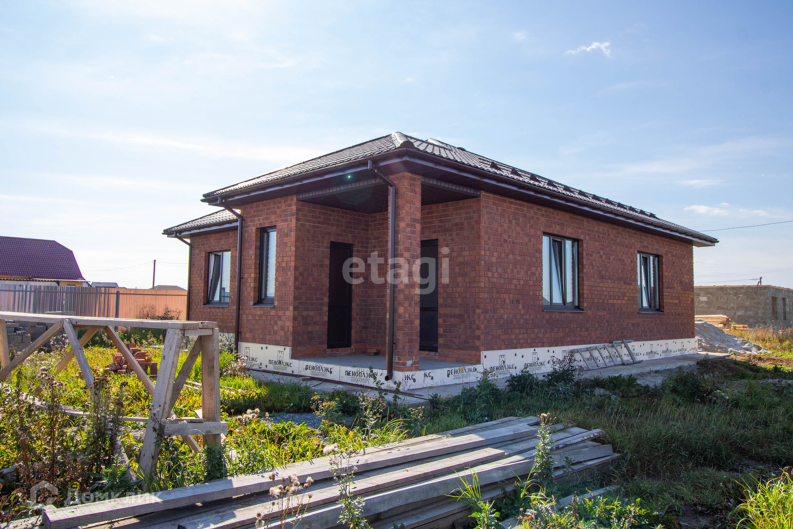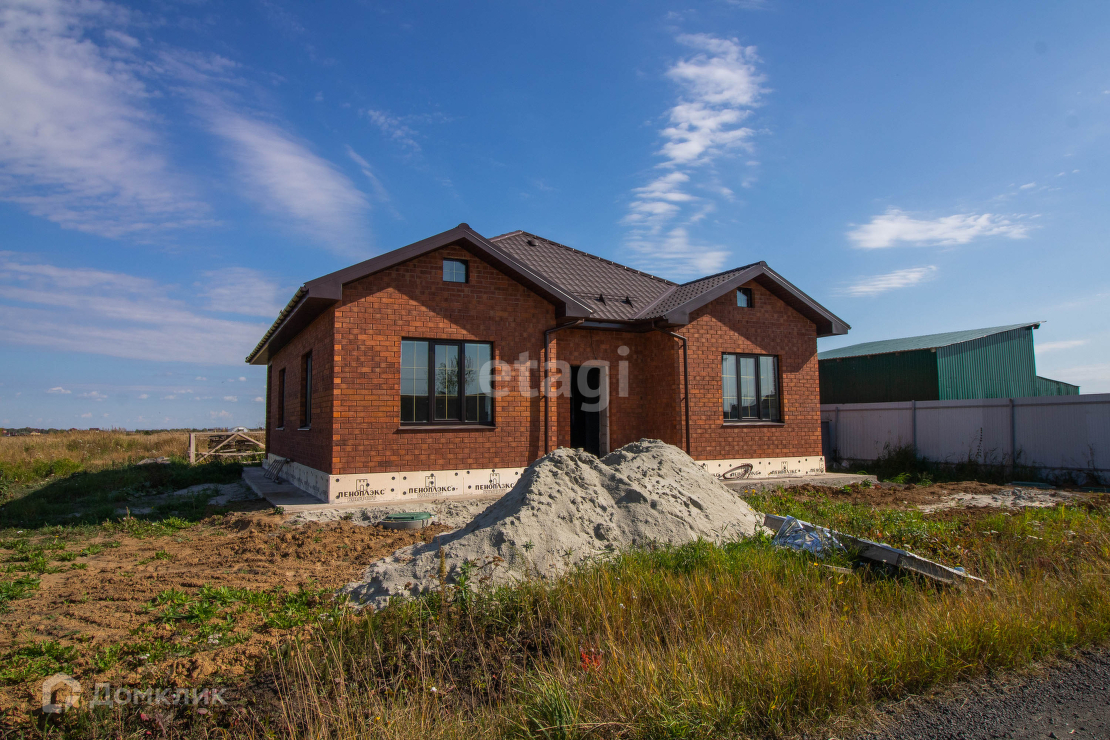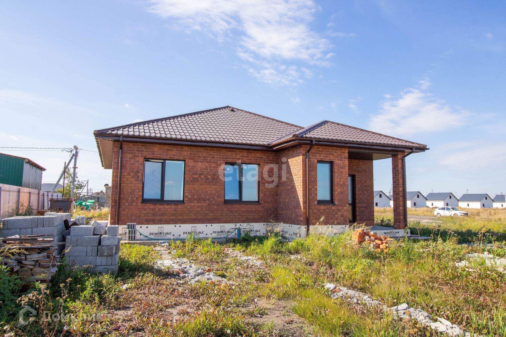 Продается современный одно этажный коттедж общей площадью 135 кв.м расположенный на земельном участке 10 соток.Одно этажный дом, фундамент на монолитной подушке 300 мм . Дом состоящий из 4 комнат, выполнен из керамзит блоков, облицован керамическим кирпичом, стены утеплены пенополистиролом. Крыша покрыта металлочерепицей и утеплена 20см слоем мин.ваты. Электричество заведено в дом, три фазы 220/380 Вт,отведенная электрическая мощность 15 кВт. Стены в внутри дома выровнены под маяк ,от шпаклеваны и подготовлены под чистовую отделку. Вода (скважина) заведена в дом. Водоотведение осуществляется в 10 кубовый металлический септик, расположенный у границ участка. Кирпичный забор со вставками из проф настила, находится на фундаменте по периметру участка. Подъезд к дому асфальт. Хорошая транспортная развязка.
