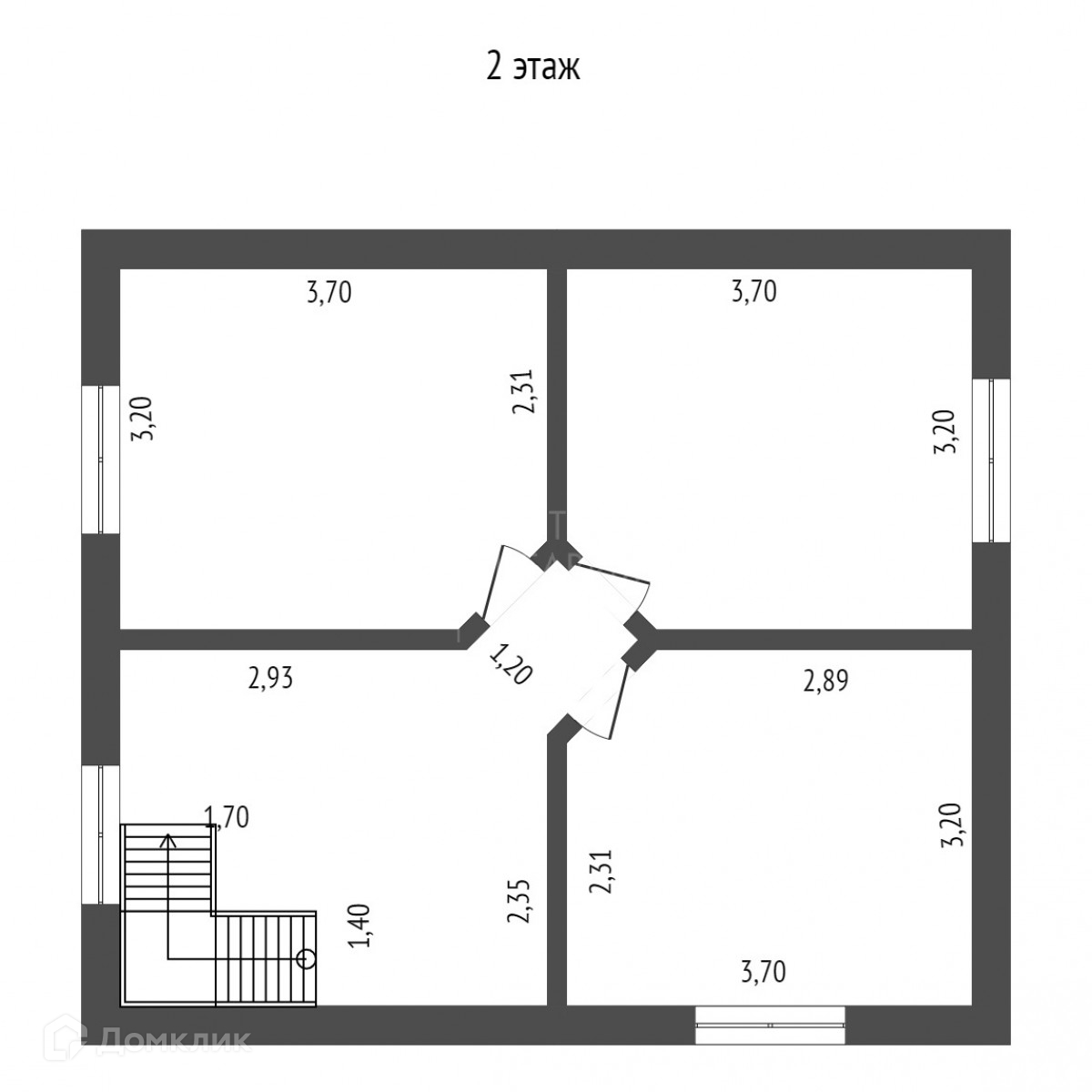 Второй этаж: две комнаты, большой коридор, который тоже можно обустроить в гостиную.