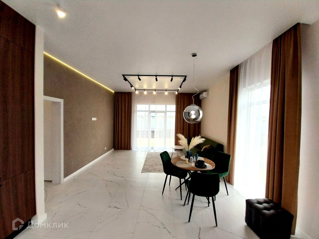 В доме выполнен дизайнерский ремонт, частично мебелирован, три спальни, просторная кухня-гостиная с выходом на терассу 11м², два санузла, гардеробная, входная дверь с терморазрывом. Школа, детский сад по близости.